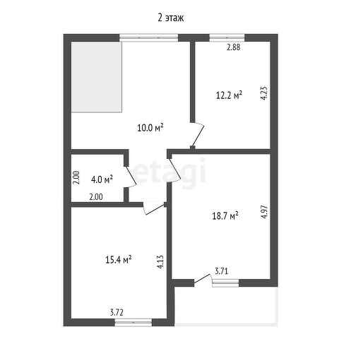 - на втором этаже три комнаты 18,7-15,4-12,2 кв.м., сан.узел 4 кв.м., балкон.
