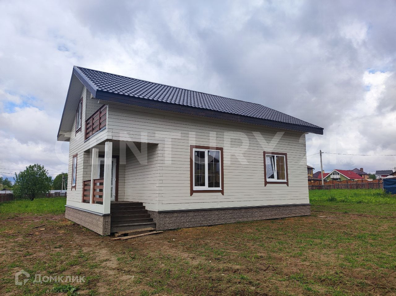Крыша металлочерепица, с мансардными окнами.