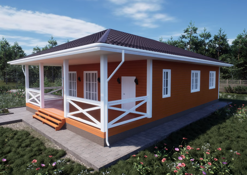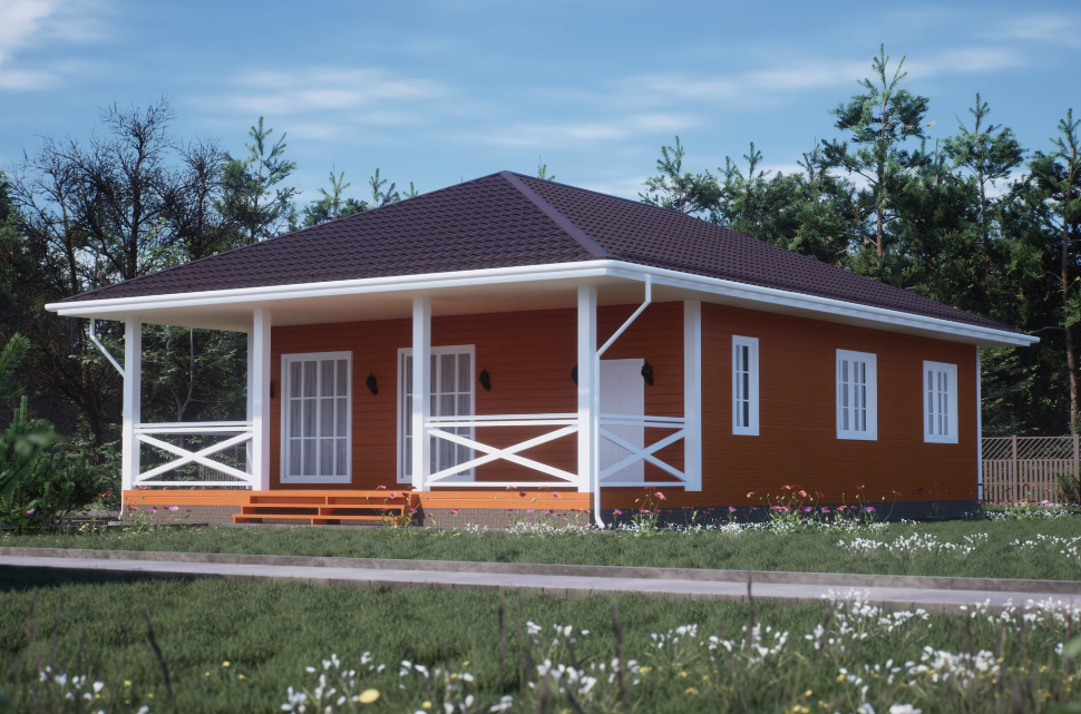 Одноэтажный дом 132 кв.м (включая крытую террасу). Доступен для бронирования в Калуге (коттеджный поселок «Радуга» в д. Колюпаново).
