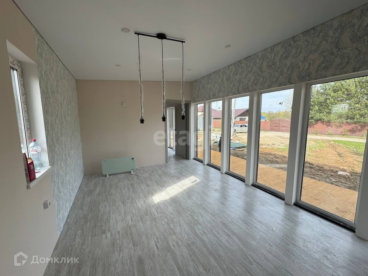 - две входные двери, межкомнатные двери, ламинат и натяжные потолки.