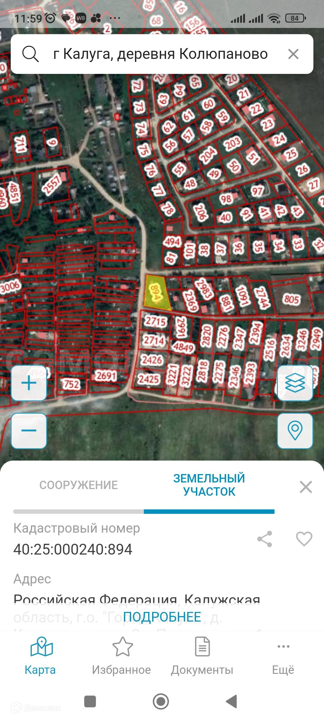 Земельный участок, кадастровый номер 40:25:000240:894.