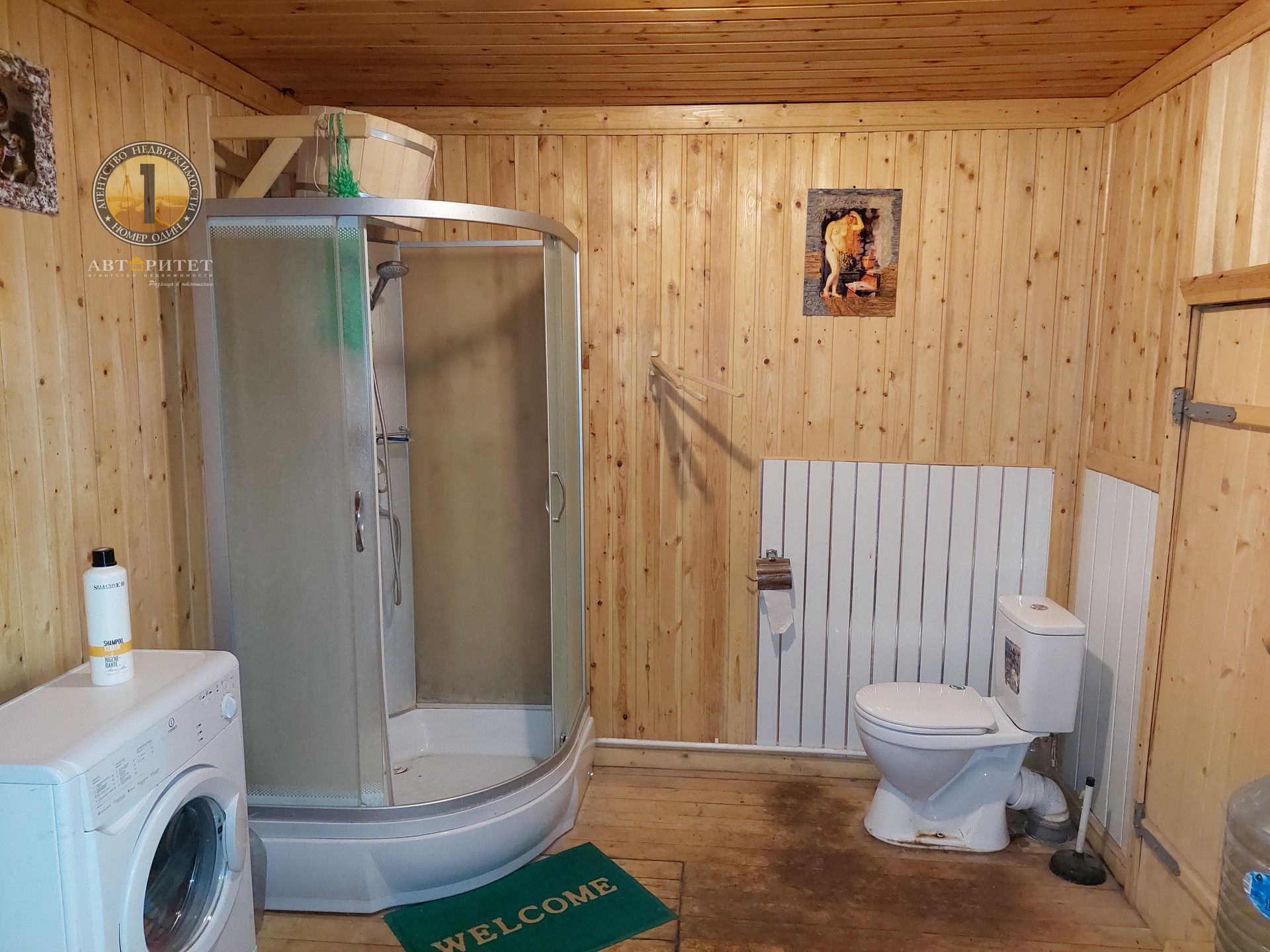 1 ЭТАЖЕ находятся кухня-комната 27,9м2, большая гостиная с КАМИНОМ 28,6м2 и спальня площадью 28,3м2. Прямо в доме, вход из санузла расположена БАНЯ.