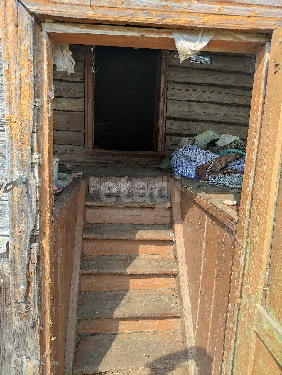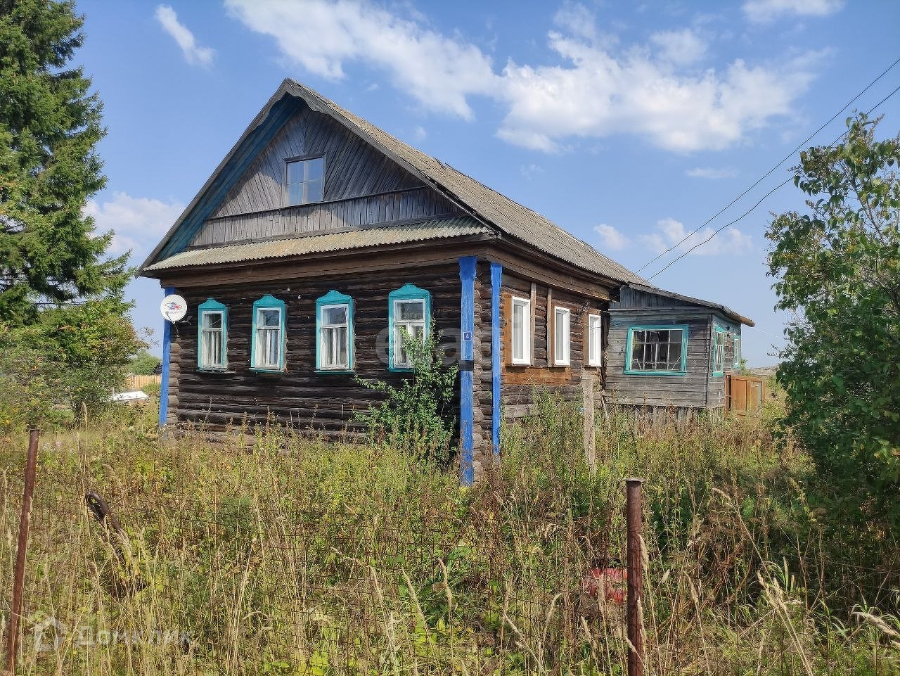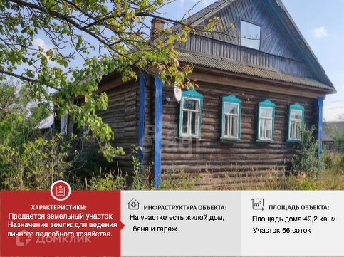 На участке есть жилой деревянный дом 49,5 м2, баня и гараж.