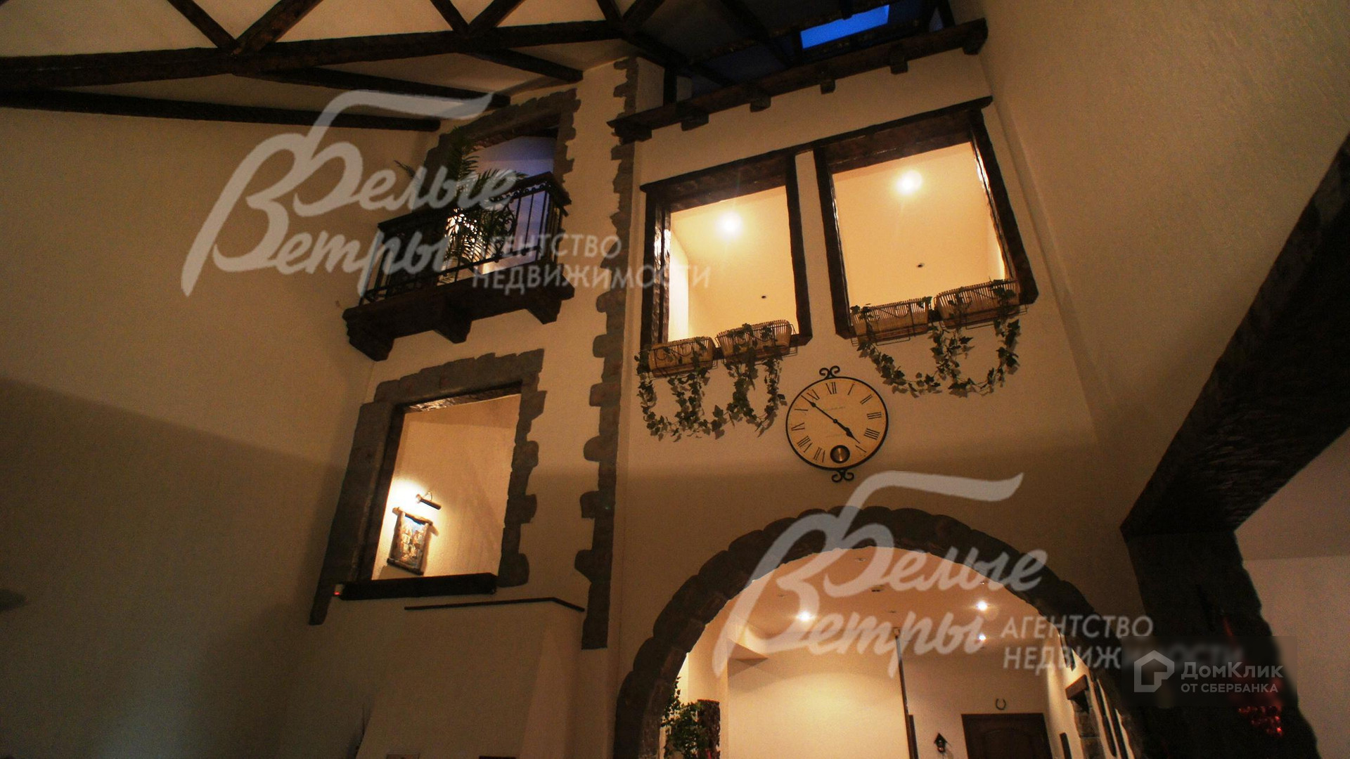 Внутренняя отделка: Общий интерьер дома (особенно гостиная) выполнен в стилизации под испанский дворик (второй свет - внутридворовая территория с выходящими на нее окнами и балконами (окна с лестничного марша и из холла 2-го этажа). Стены отделаны декоративной штукатуркой, на полу палубная доска (массив красного дерева), в санузлах и сауне-плитка. Лестничный марш ж/б монолитный, облицован дубом. Потолки гипсокартонные. Вся сантехника установлена. Все коммуникации разведены под ключ..