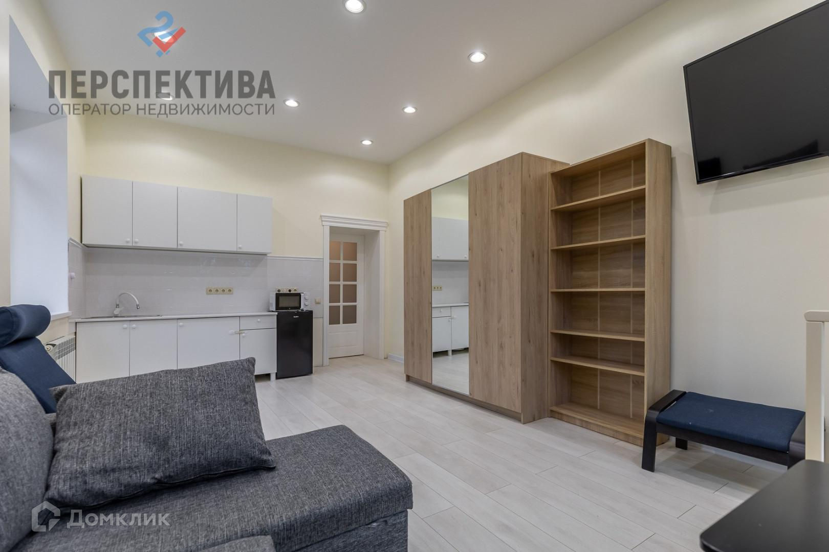 Комната-студия 21 кв. метр, с встроенным кухонным гарнитуром.