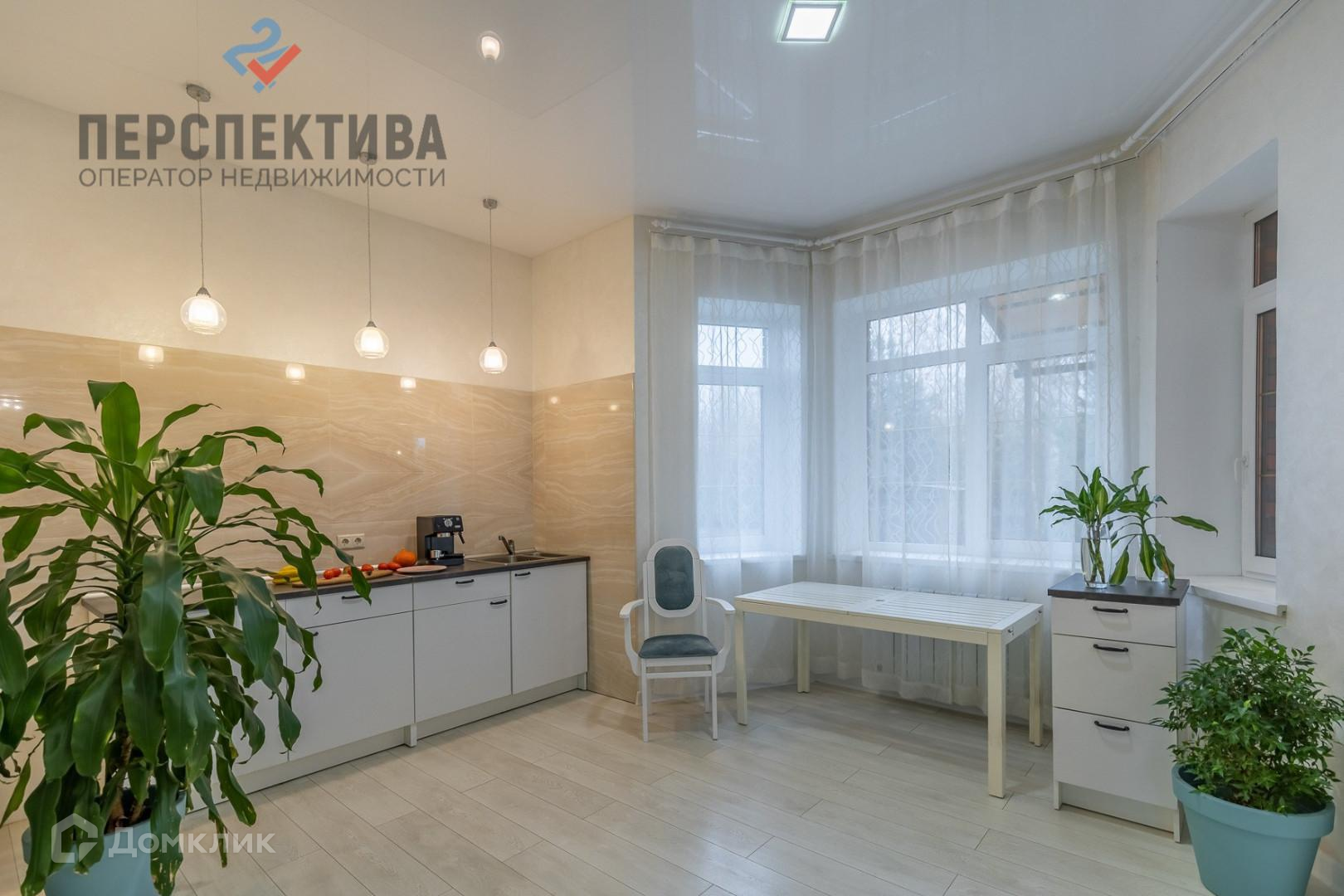 Просторная кухня-гостиная 60 кв. метра с окнами на три стороны и выходом на террасу во двор, с зоной барбекю.