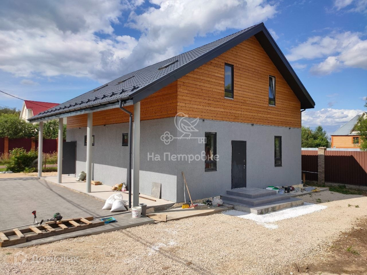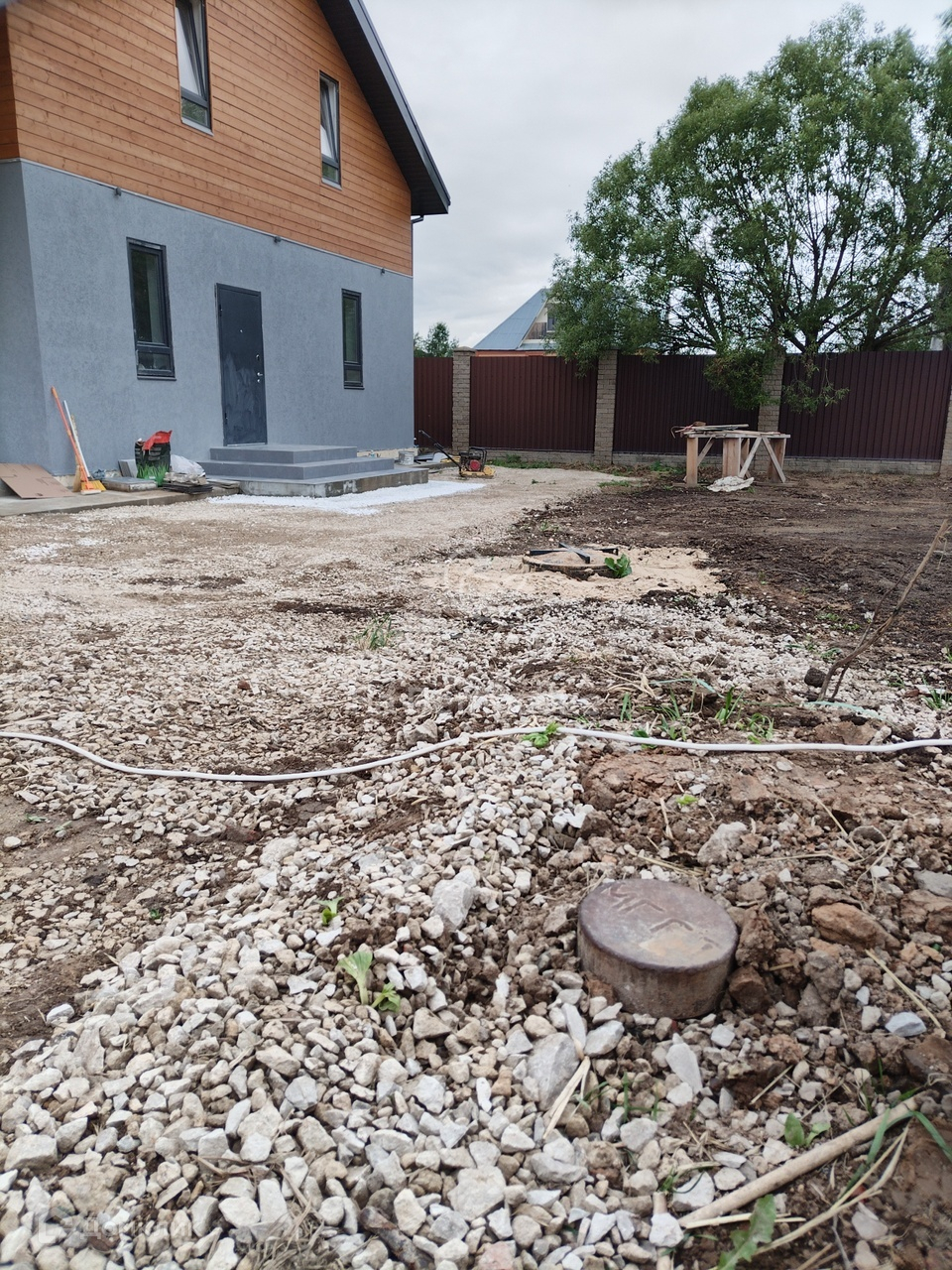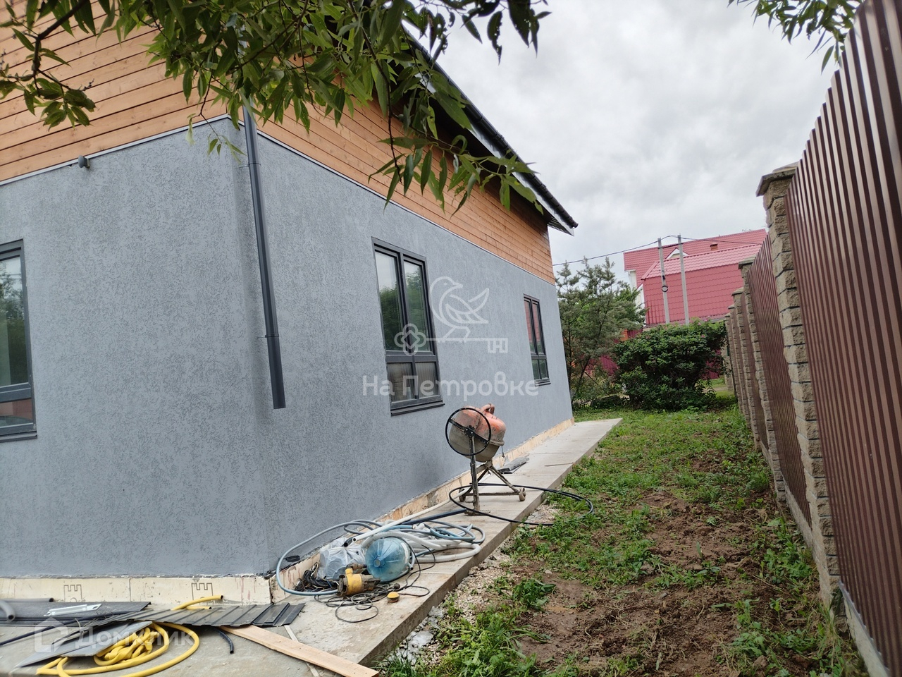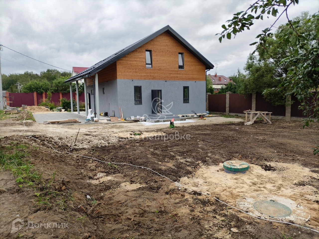 Дом еще на стадии завершения ремонтных работ и облагораживании его участка. Засеивается газон, ставится забор. Есть возможность уже сейчас стать владельцем коттеджа и совместно с застройщиком выбрать , как будет выглядеть ваш дом и двор .