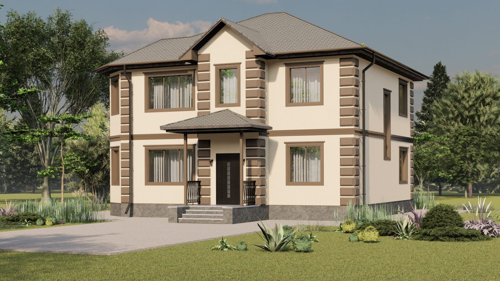 Стеклопакеты и входные двери также включены в стоимость.