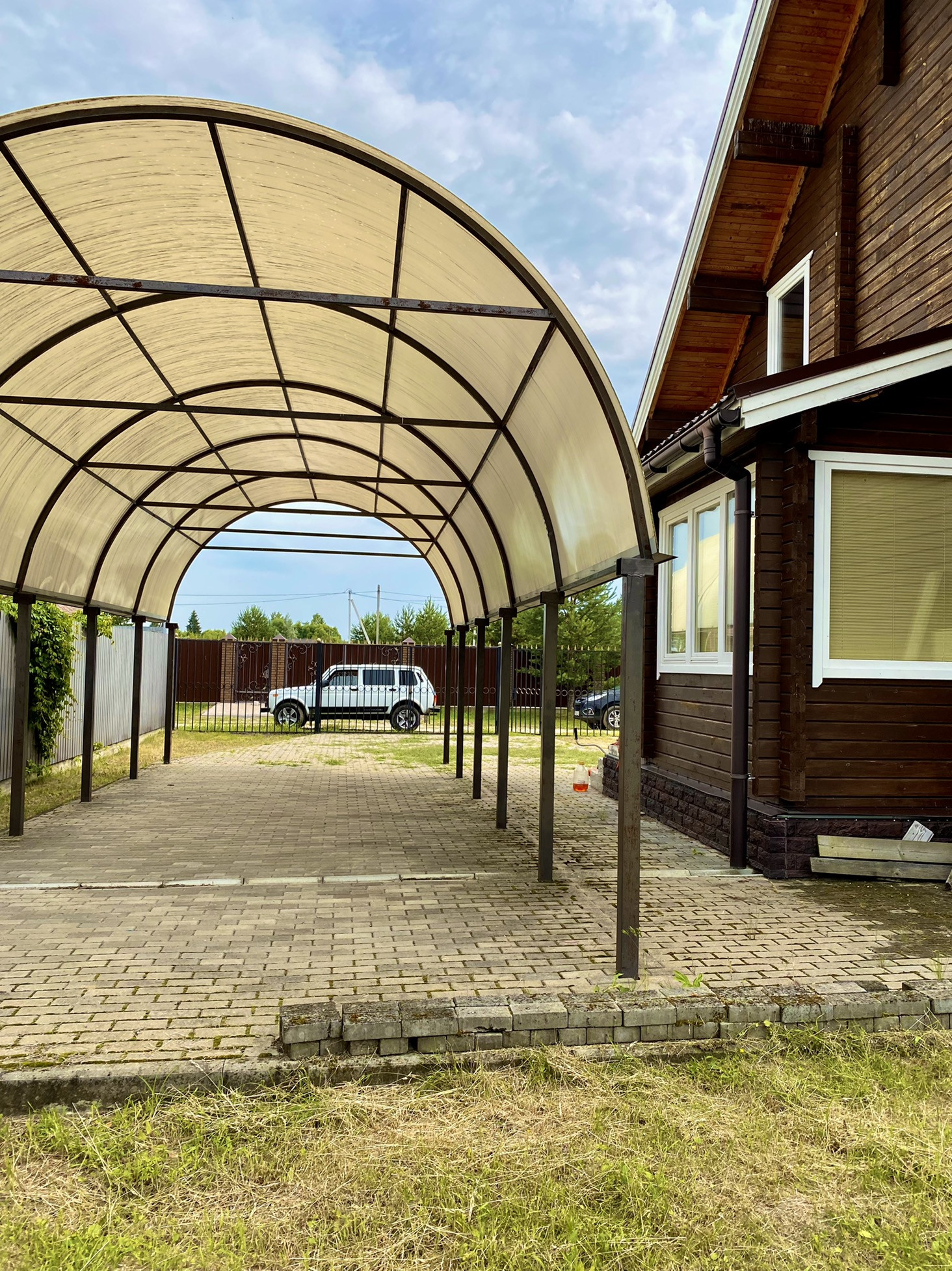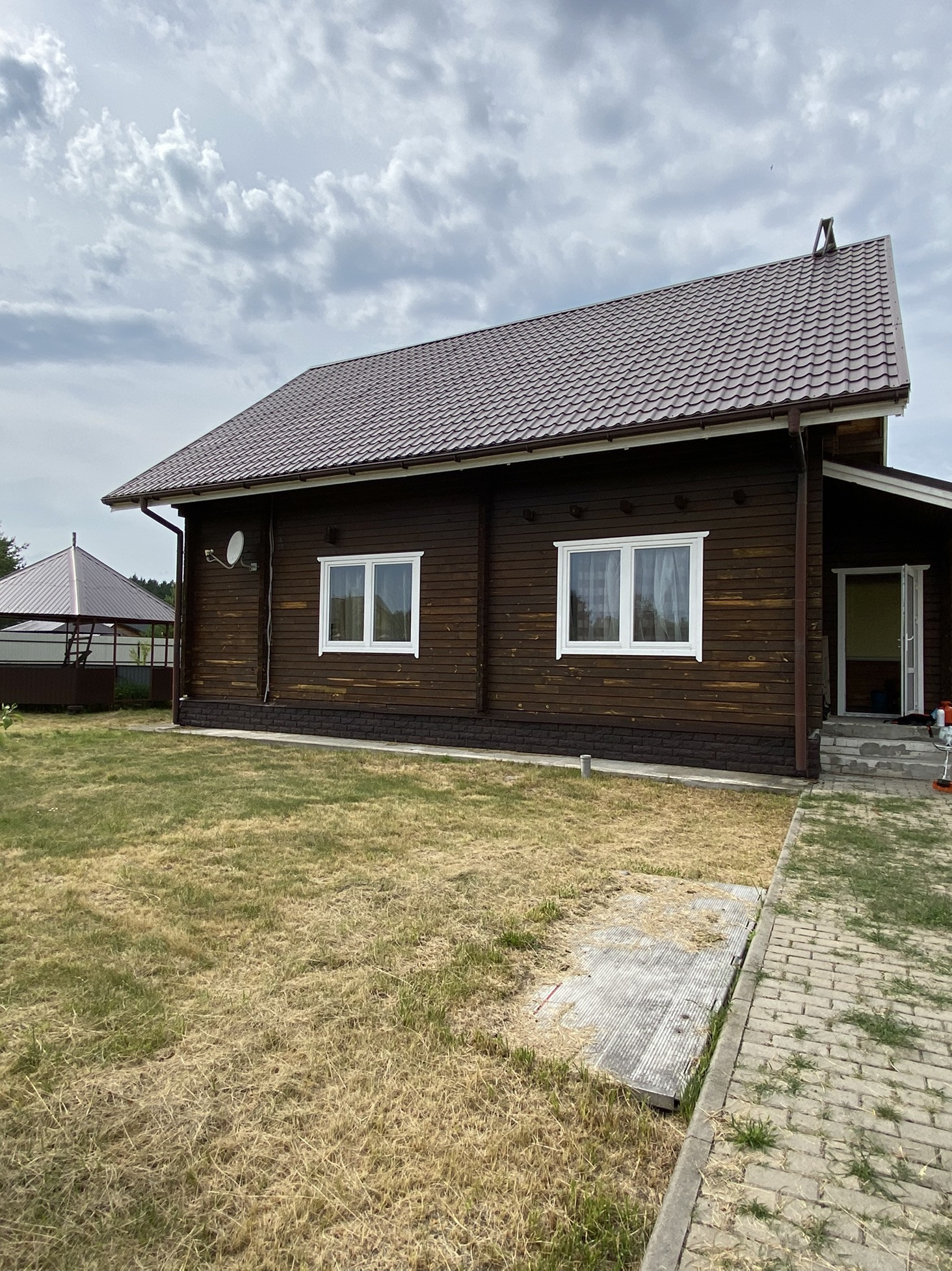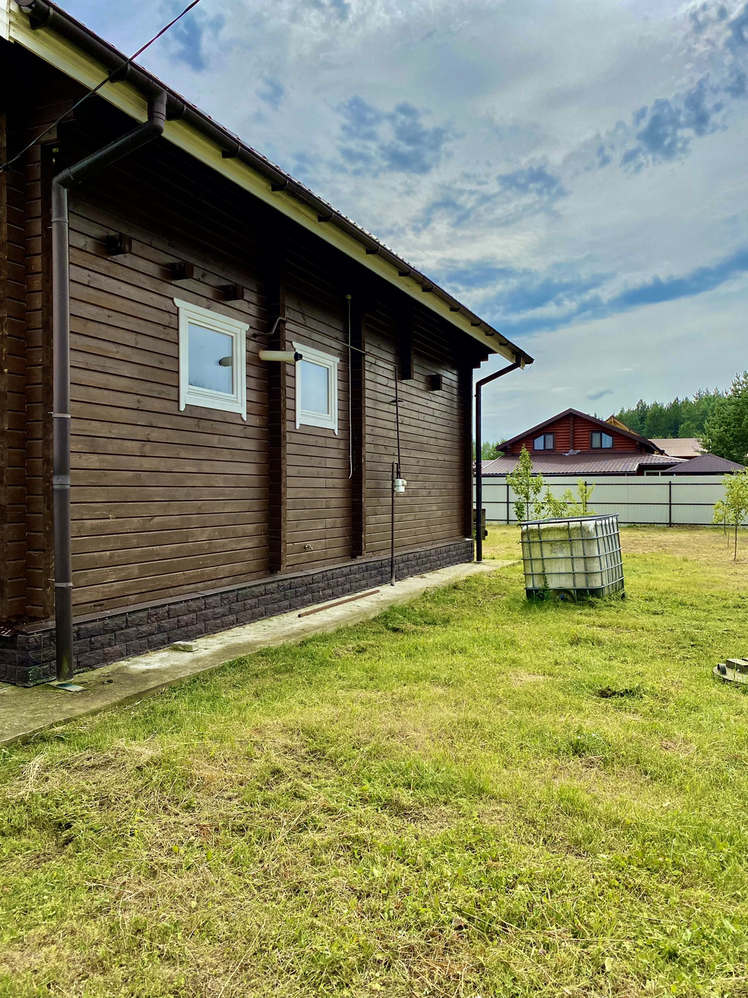 Дом расположен в месте, которое можно было бы назвать «клубным кварталом» - две улицы добротных загородных коттеджей, со всех сторон окружённых лесом, спускаются к реке, где можно купаться.