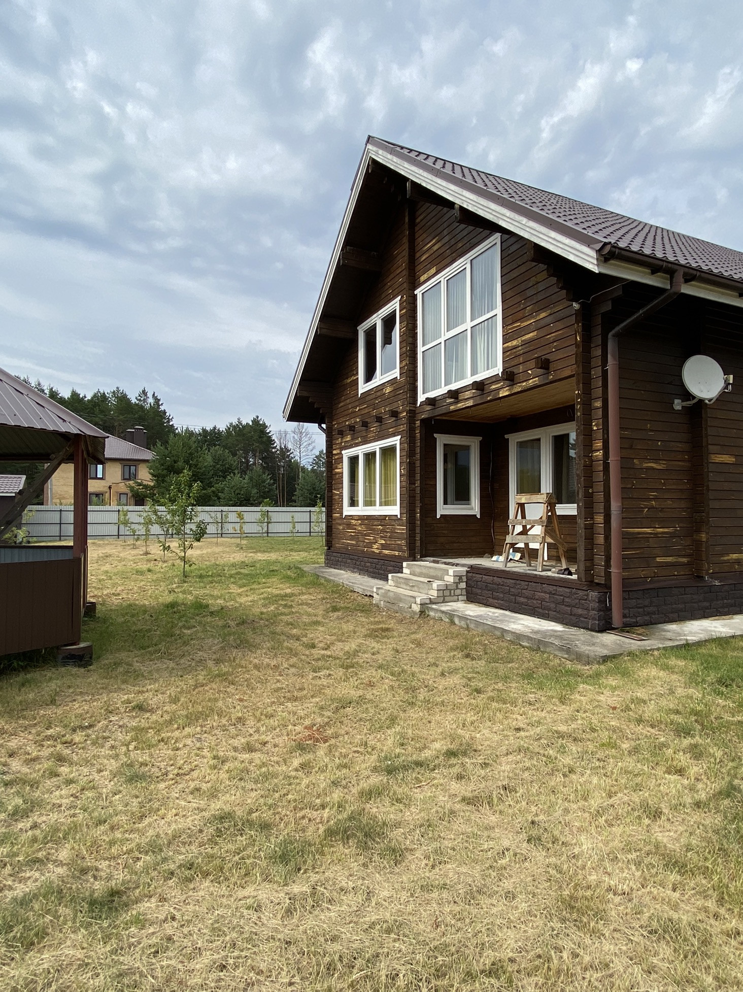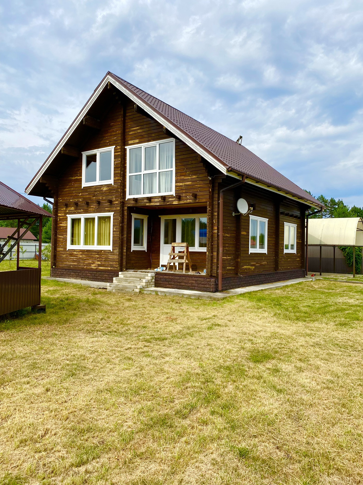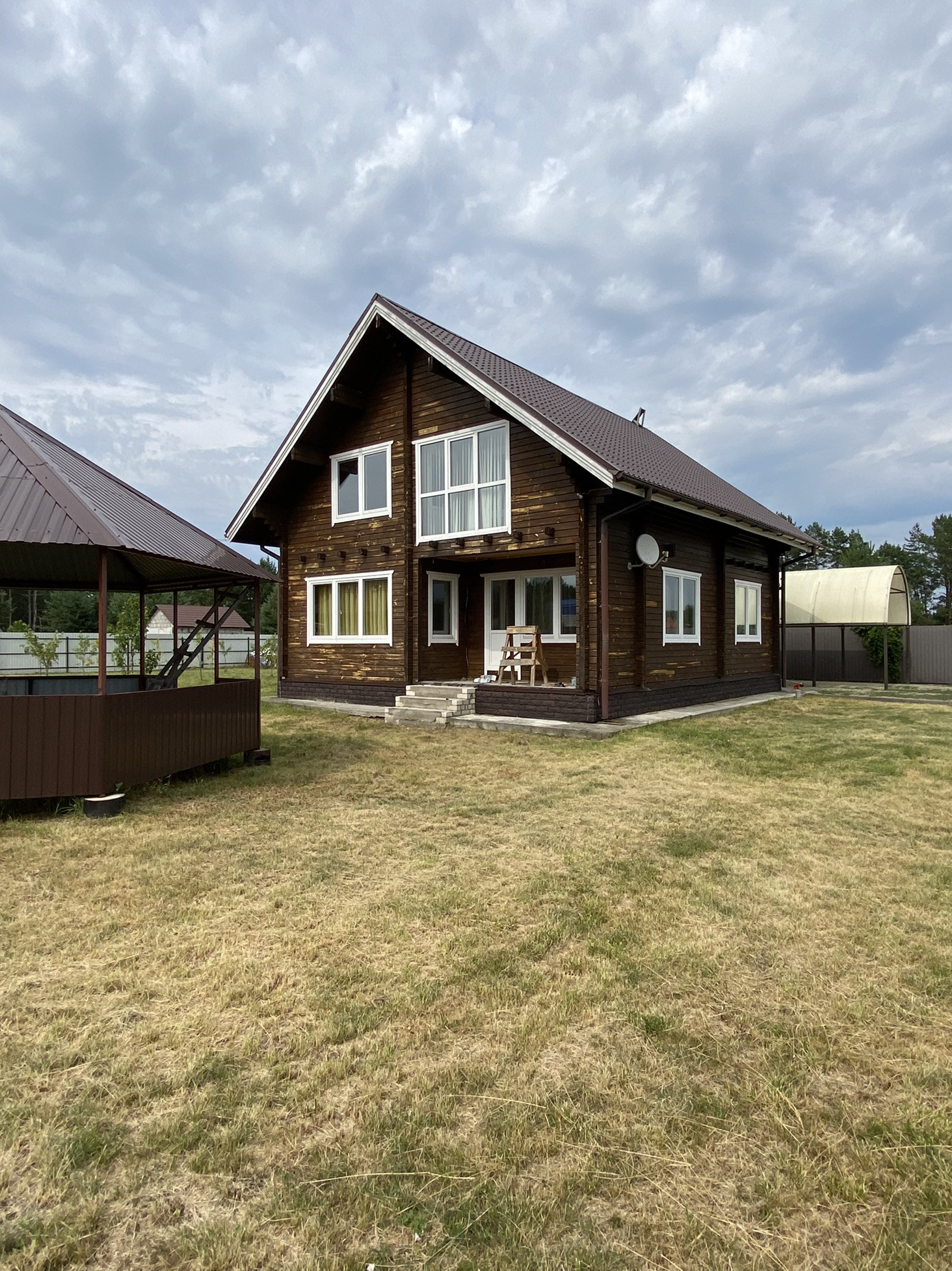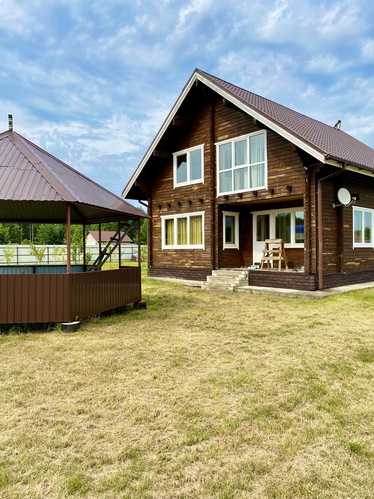 В продаже двухэтажный дом из клеенного профилированного бруса общей площадью 180 квадратных метров, расположенный на участке 15 соток.