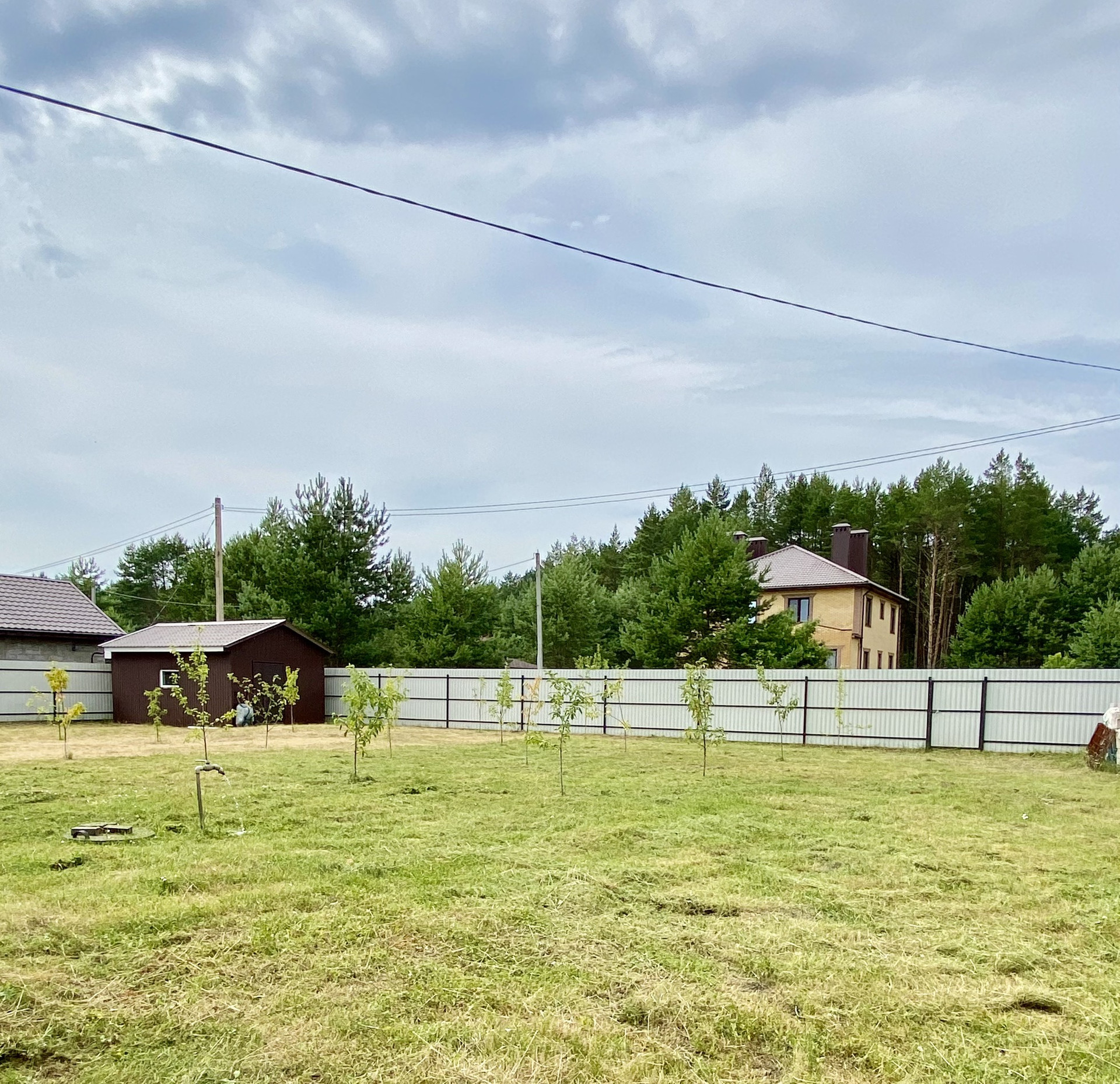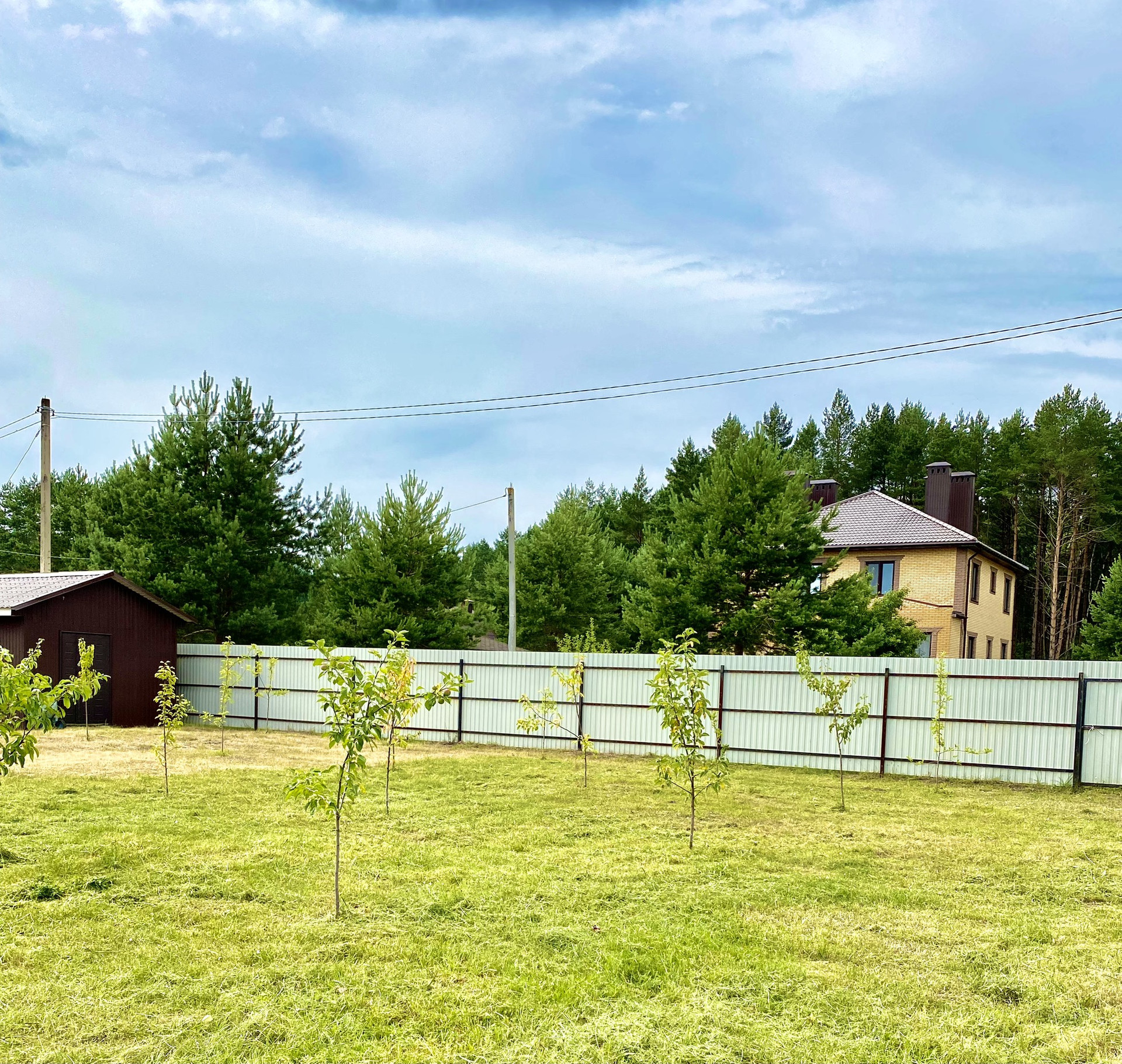 Участок квадратный, 15 соток, засажен фруктовыми деревьями.