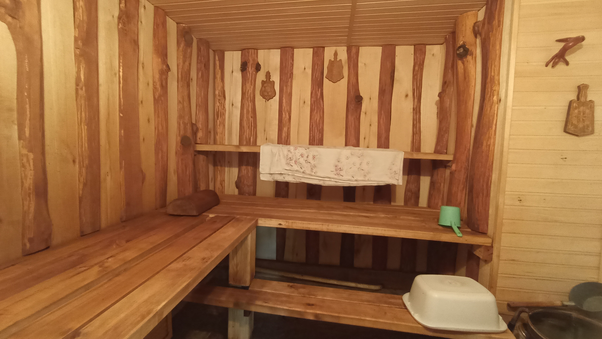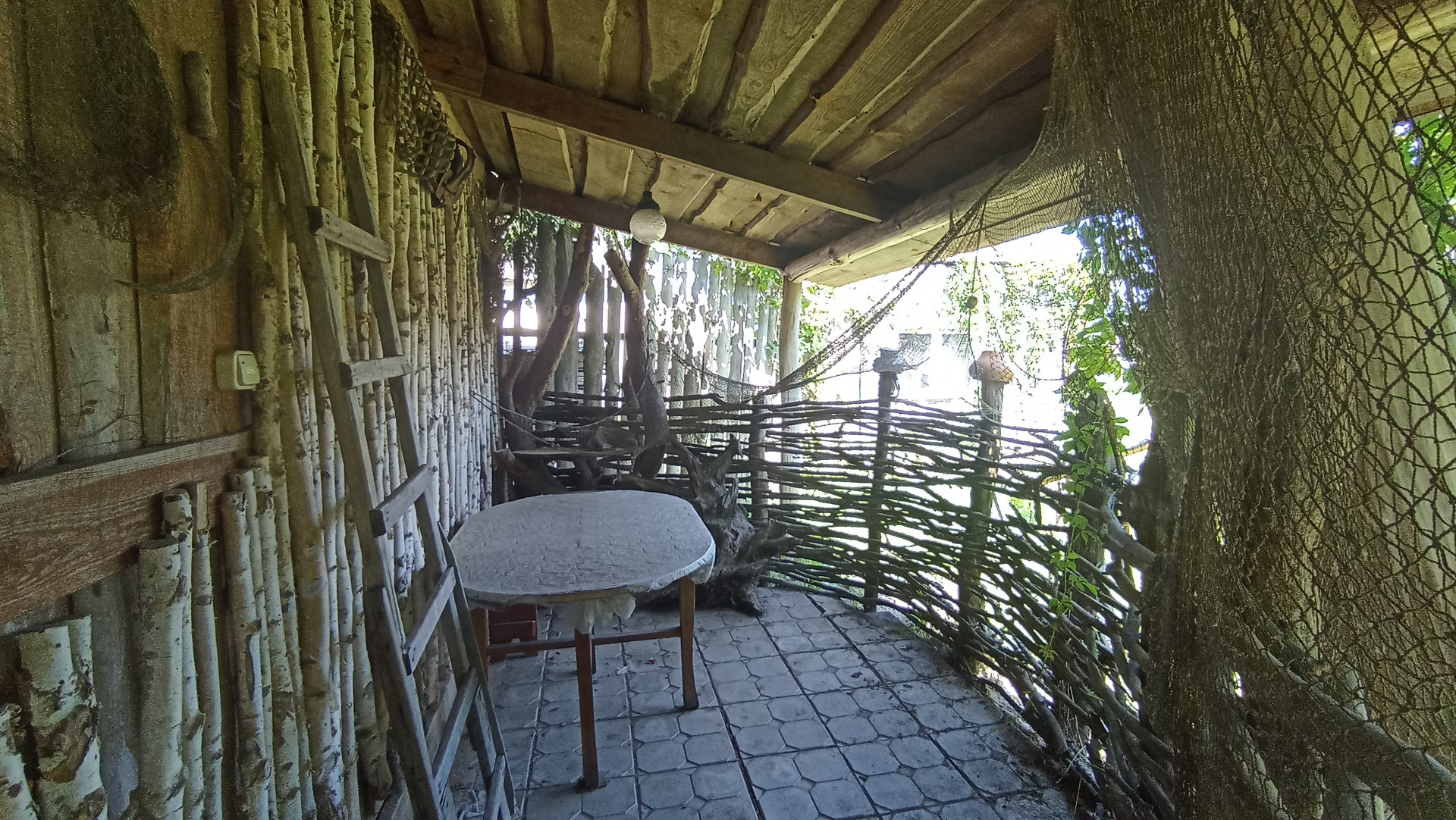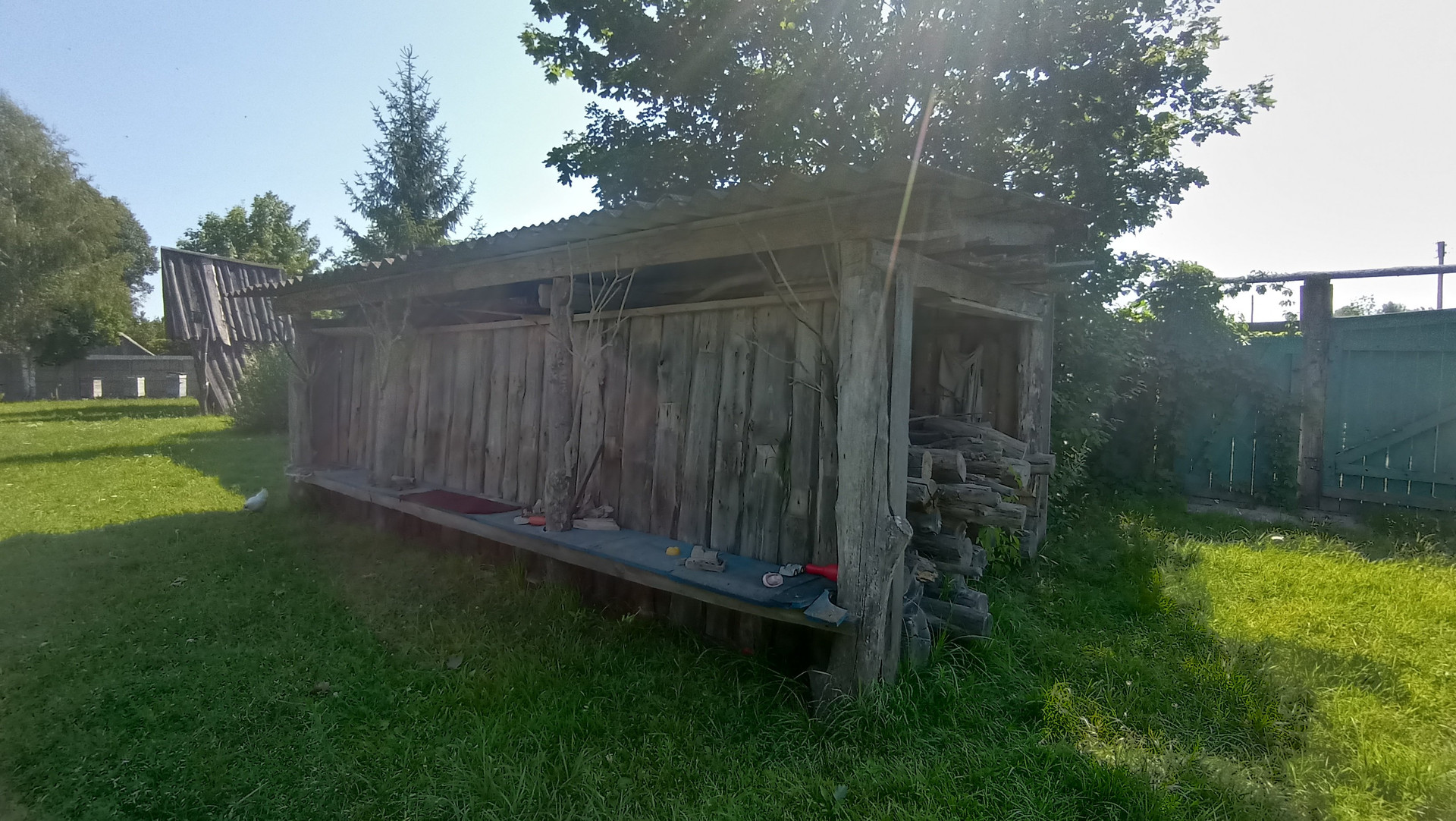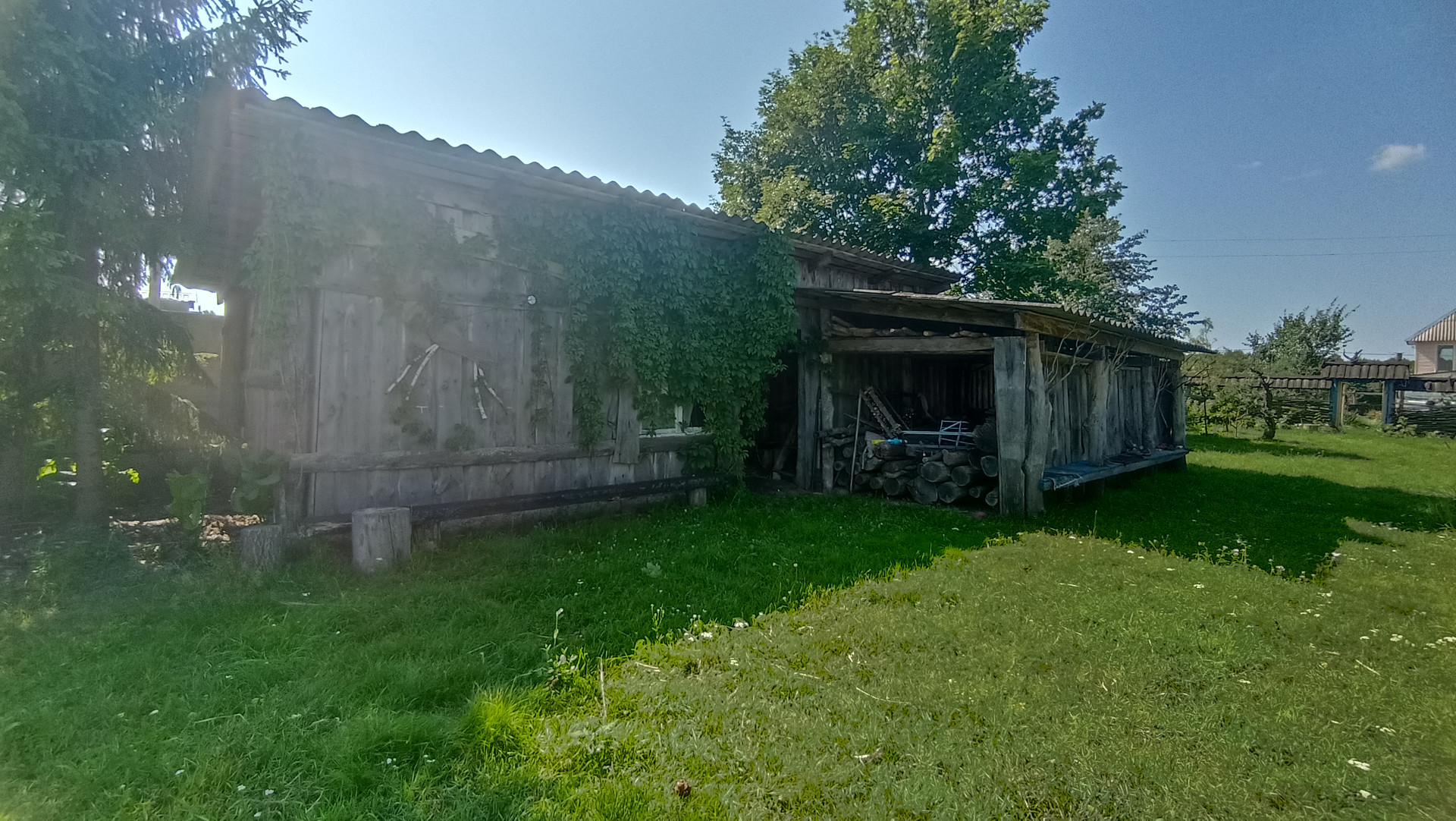 На территории есть множество придомовых построек: гараж, помещение для релаксации,