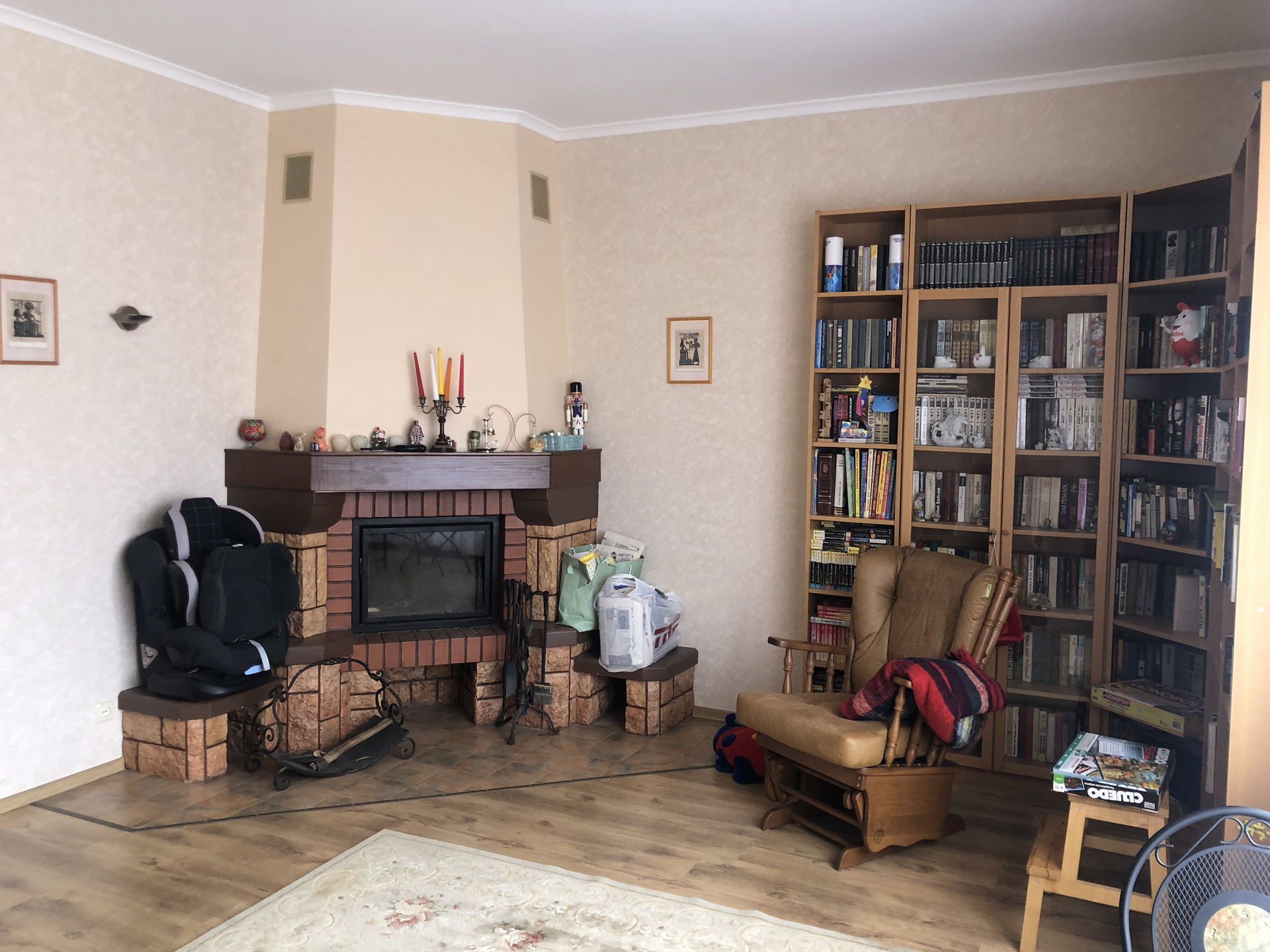 Комната с камином (28м2) 2- спальни (23+13,5м2), высота потолка (2.95м)