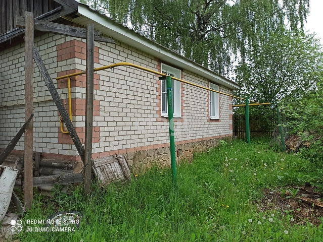 Продам дом площадью 70 квадратных метров. 3 комнаты и кухня, есть летняя веранда. Водопровод, электричество, газовое отопление (новый котёл), установлены счётчики. К дому пристроен сруб из бруса размером 5*5 под расширение и подведен под крышу. На участке имеется баня.