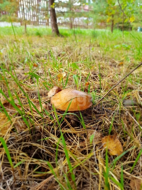 Участок огорожен по всему периметру, на участке растут смешанные деревья.