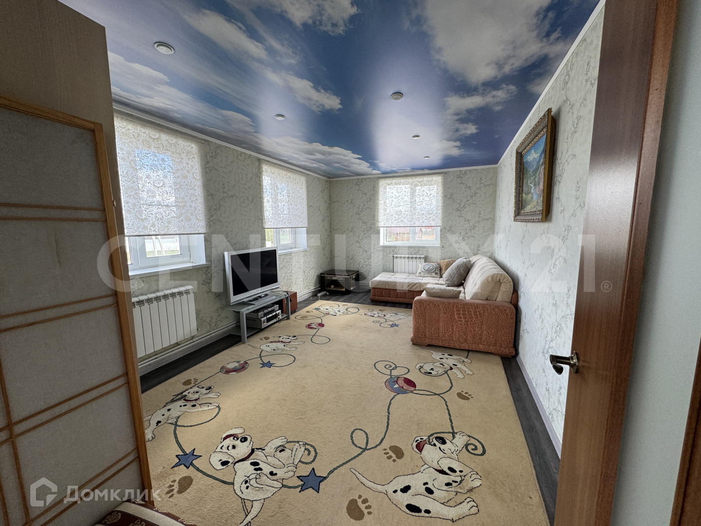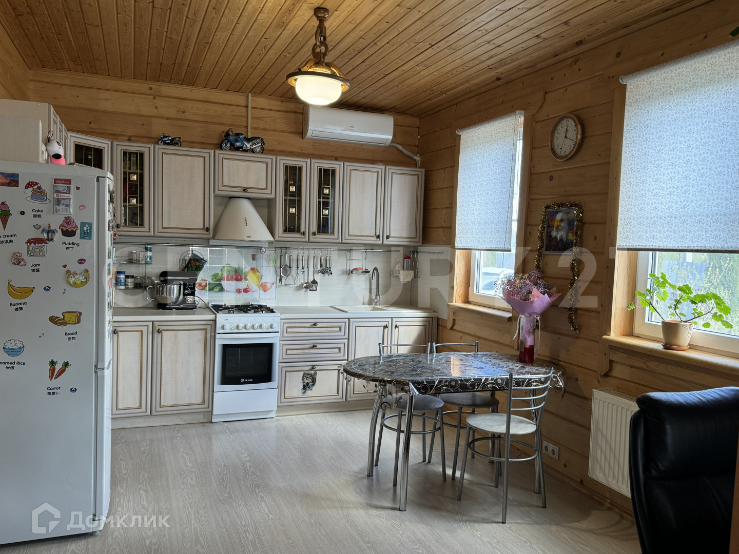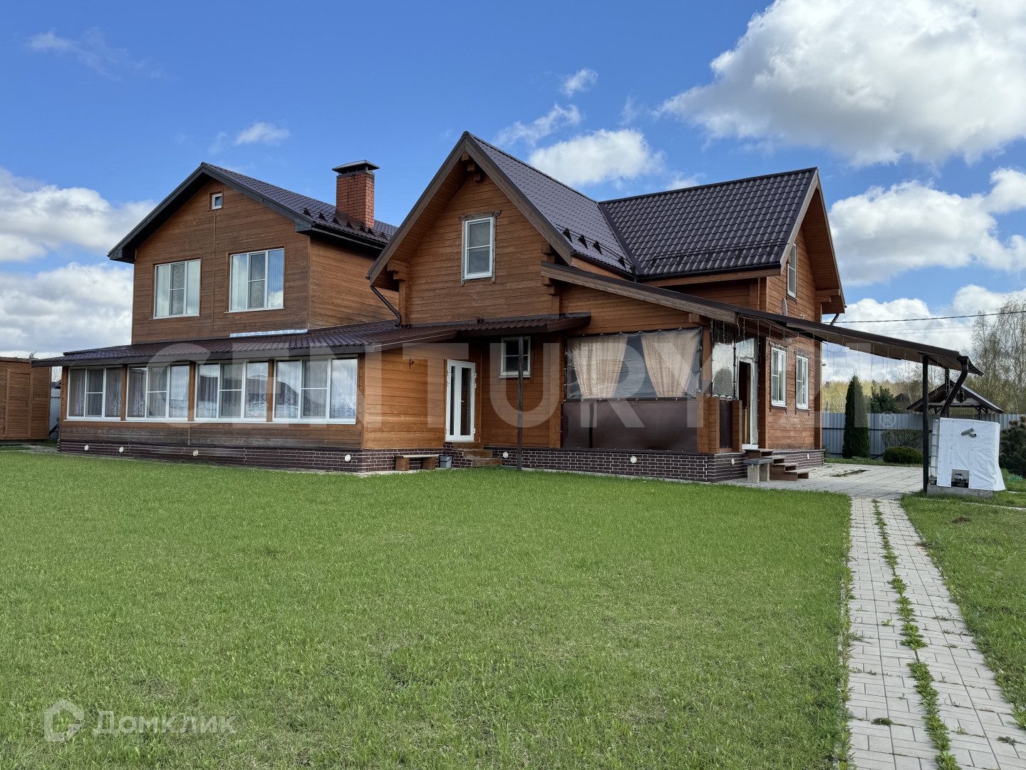 Пять спален, просторная гостиная, две ванные комнаты, три больших кухни, терраса. Баня.