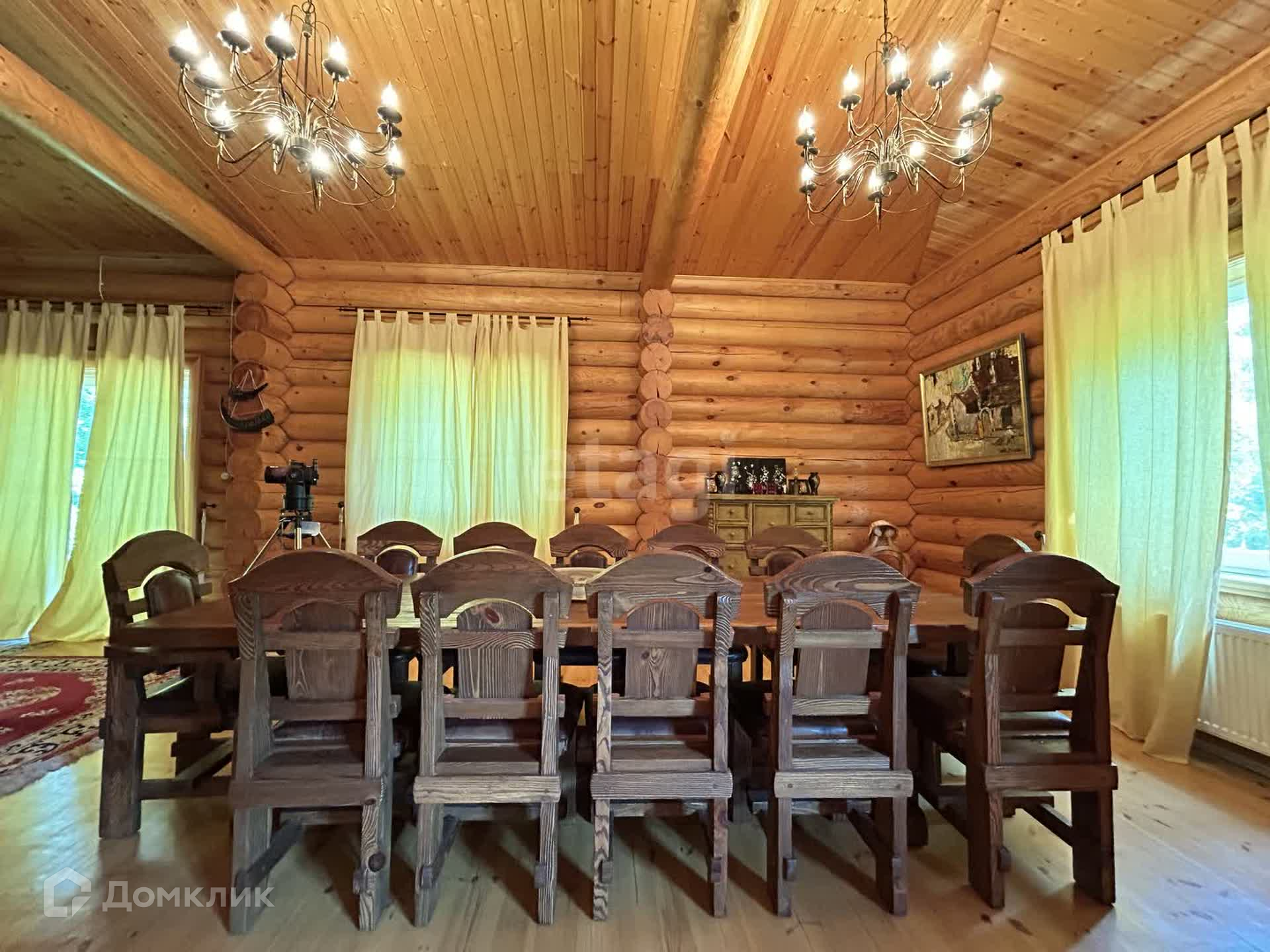 На продажу предлагаются два дома: основной коттедж площадью 325 кв.м. и уютный гостевой дом площадью 150 кв.м. Оба дома построены из оцилиндрованных бревен архангельской сосны диаметром 28 см, что обеспечивает надежность и долговечность.