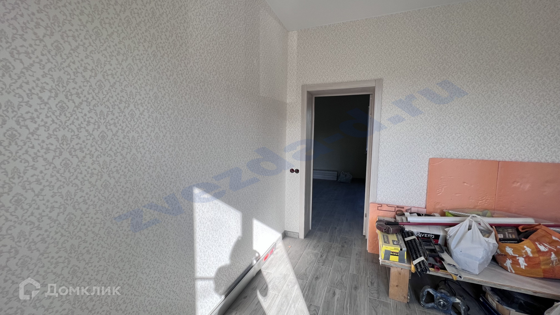 Стены - обои, пол - ламинат, кафель.