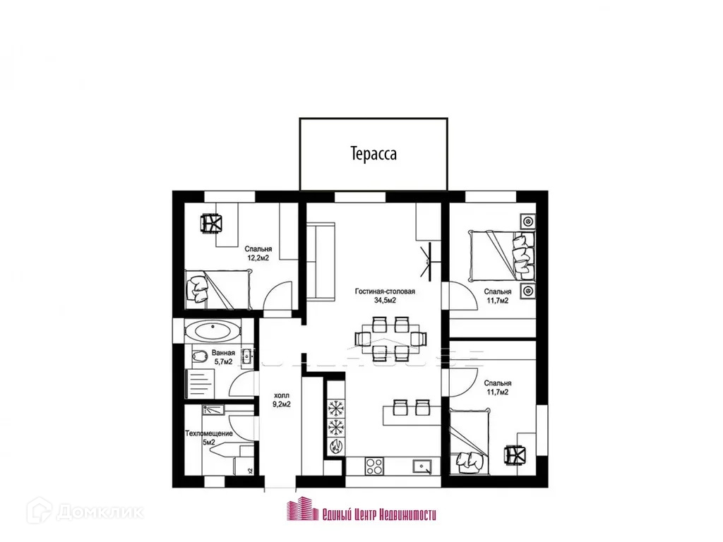 Площадь кухни 34.5 м2