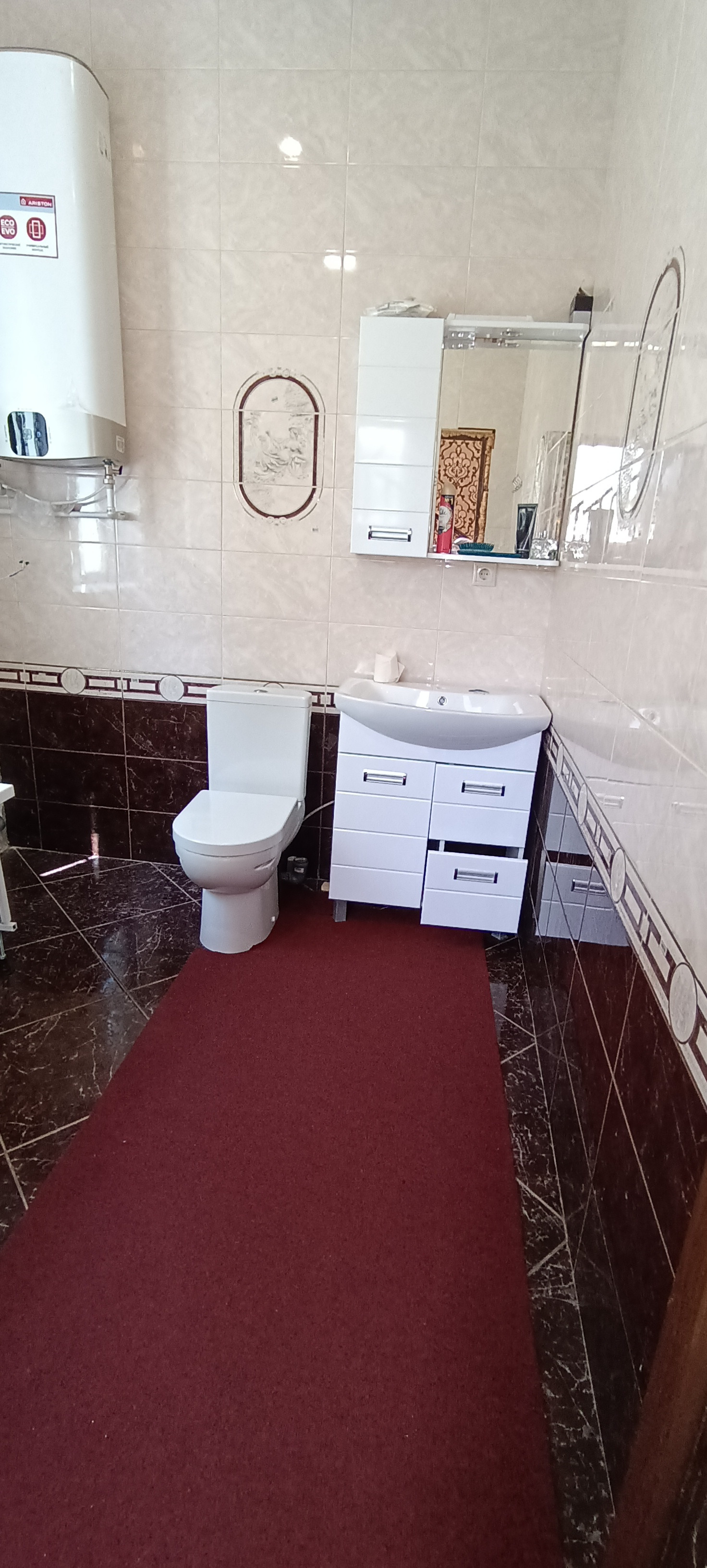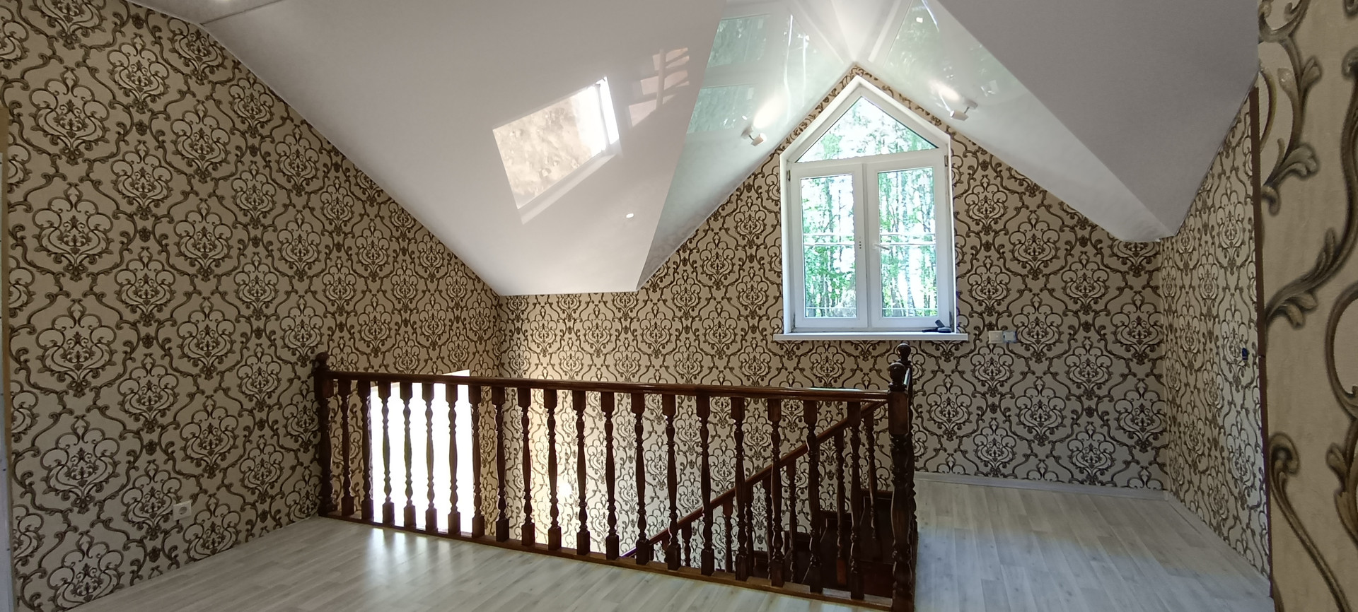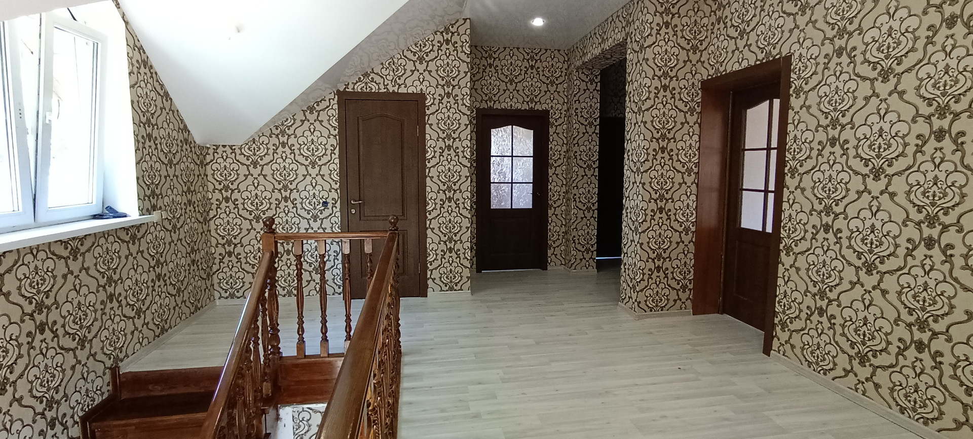 На втором этаже расположены 4 изолированные спальни, холл и санузел. Есть подвал и чердачное помещение. Высота потолков в доме 2,9м. В большинстве помещений сделан качественный ремонт, установлено сантехническое оборудование, во всех помещениях трехкамерные стеклопакеты, натяжные потолки. В некоторых помещения ремонт в стадии завершения.