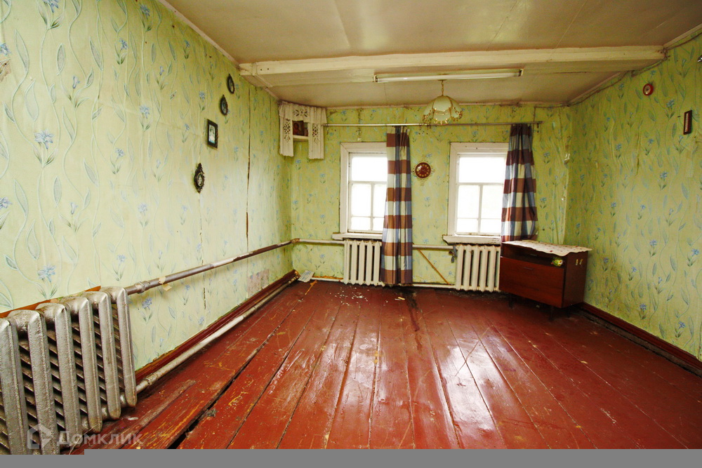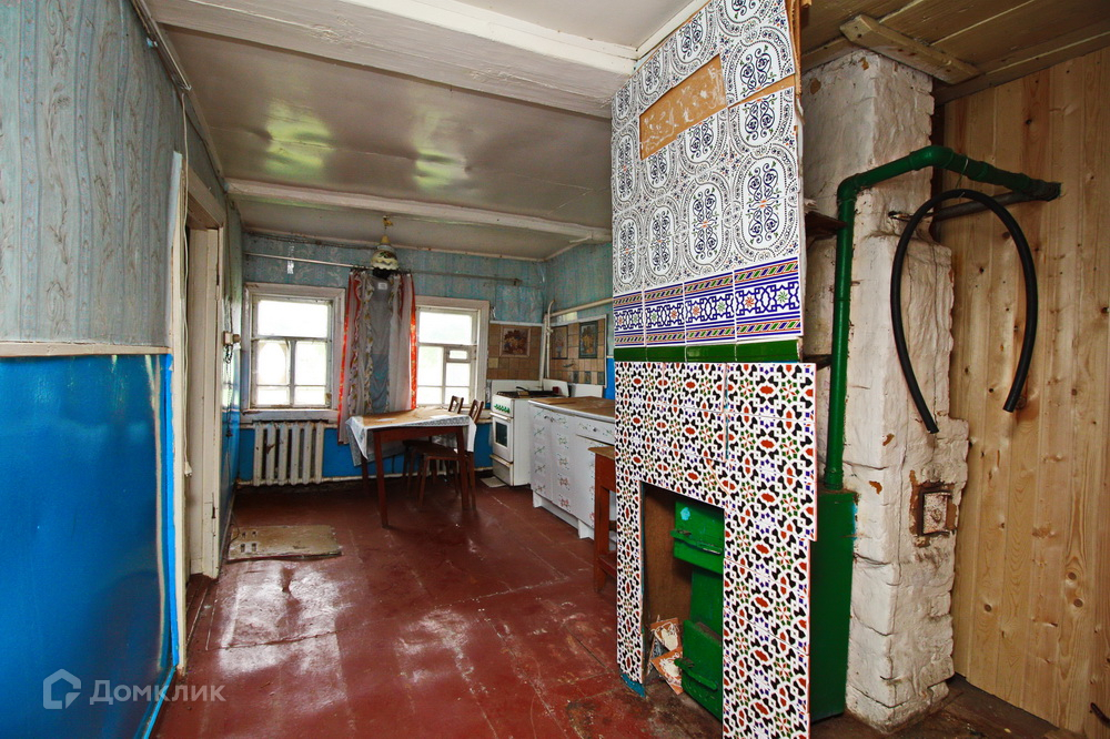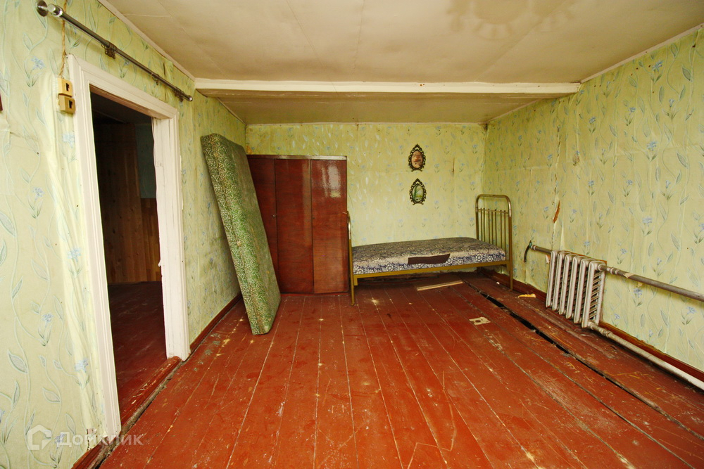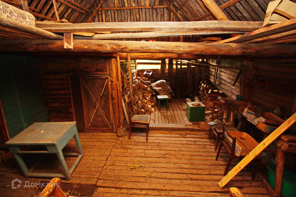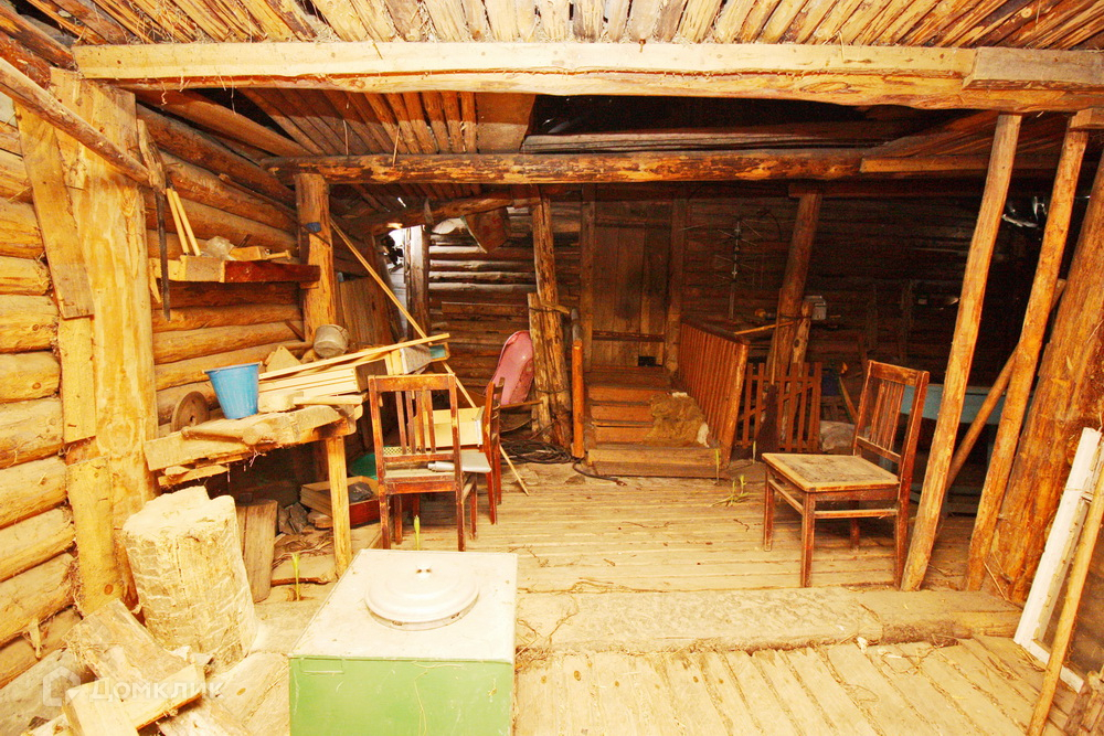 В доме одна изолированная комната, окна деревянные, большая кухня и просторная терасса, всё что имеется в доме при продаже - остаётся. Крыша покрыта шифером, материал стен - бревно, так же имеется большая пристройка, которая использовалась как хозяйственный двор, помимо этого на дворовой территории имеется действующая баня + недалеко от дома имеется пруд.
