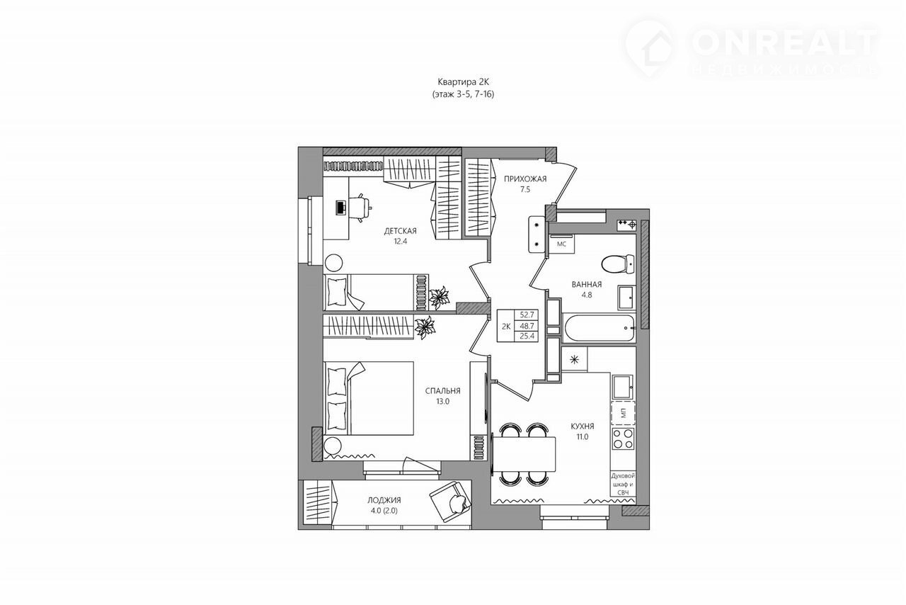 Общая площадь 50.7 м2