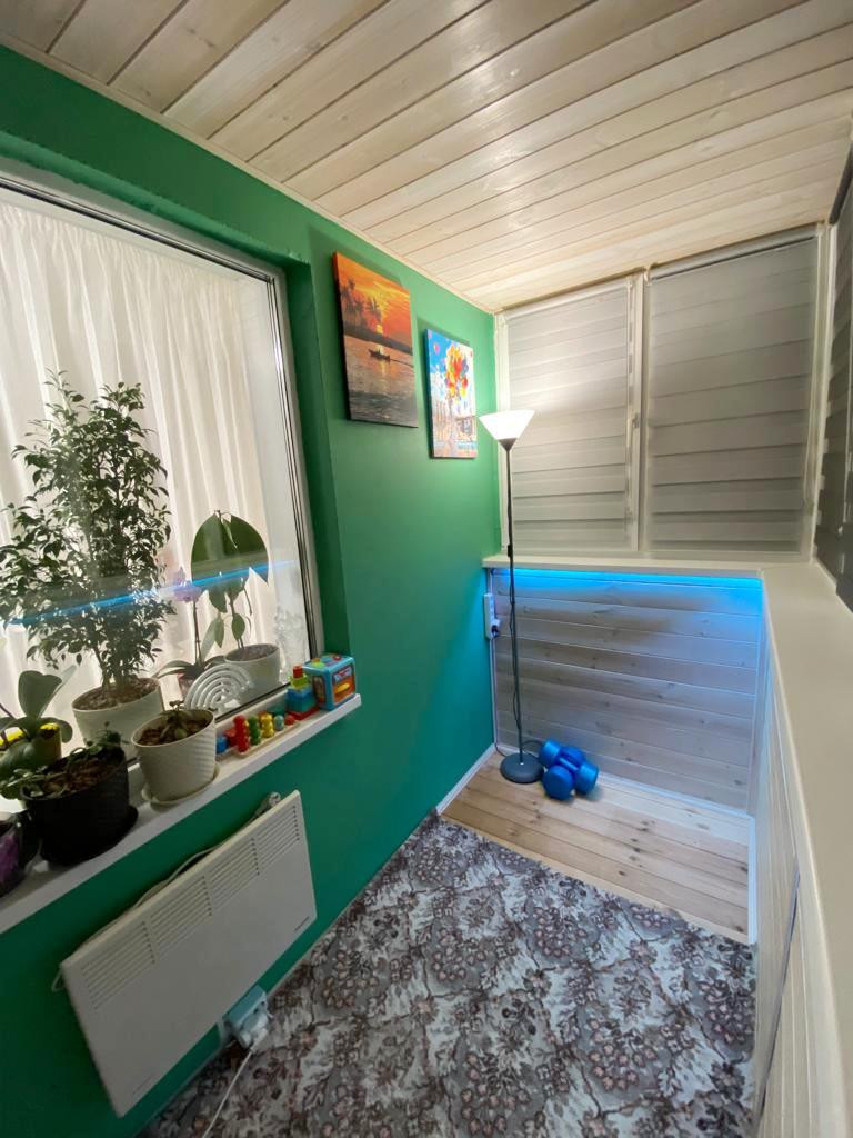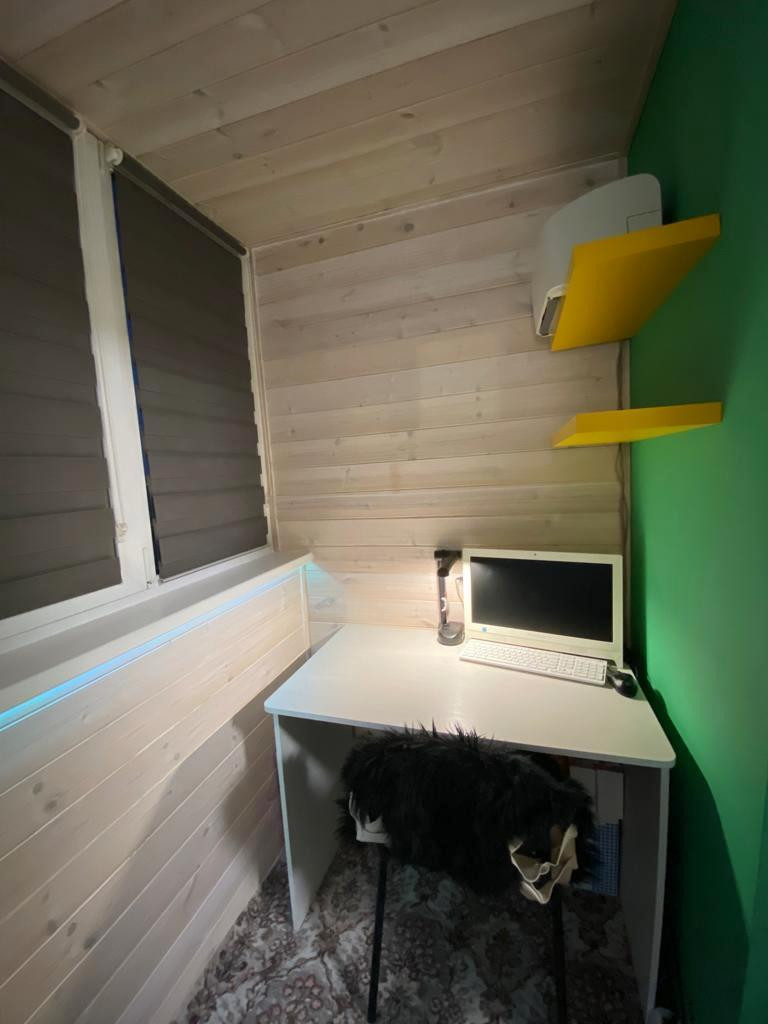 На балконе замены стеклопакеты, сделано утепление и дополнительная подсветка. Полноценный рабочий кабинет!