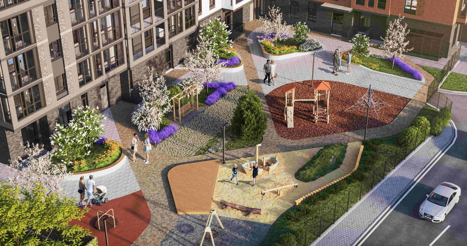 2) Игровая площадка для детей. В целях безопасности двор отделён от парковочных мест. И батуты, и туннели для путешественников, и песочница для самых маленьких. Ваш ребёнок точно найдёт, чем себя занять.