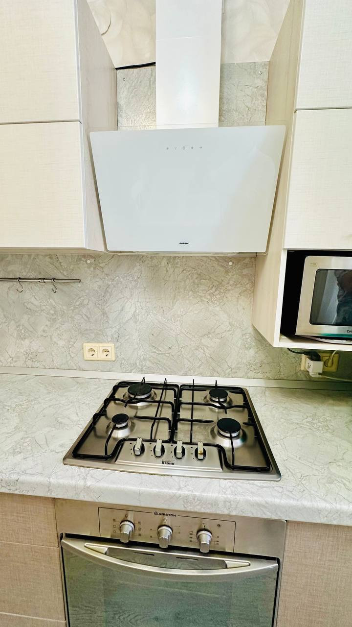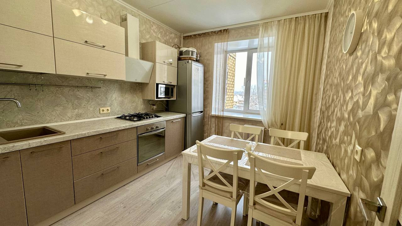 В квартире сделан качественный свежий ремонт: на полу ломинат, в входной зоне керамическая плитка, в санузле и ванной комнате керамическая плитка до потолка и на полу, поклеены свежие обои, заменены межкомнатные двери и входная дверь, на кухне установлен кухонный гарнитур, в туалете водонагреватель.