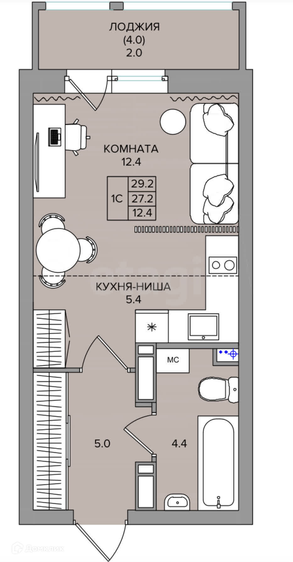 Общая площадь 29.2 м2