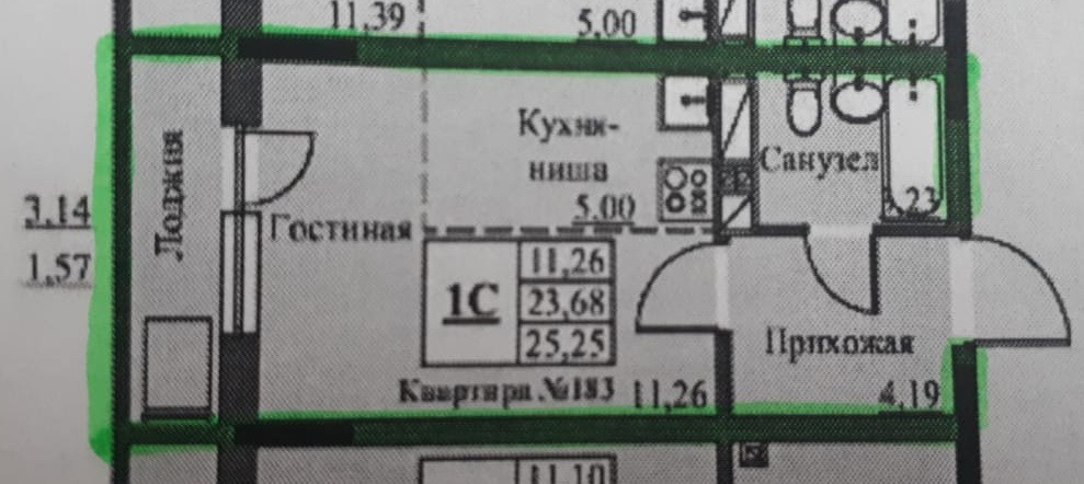 Жилая площадь 11.3 м2
