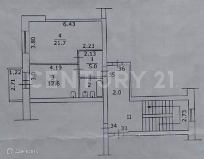 Общая площадь 42.9 м2