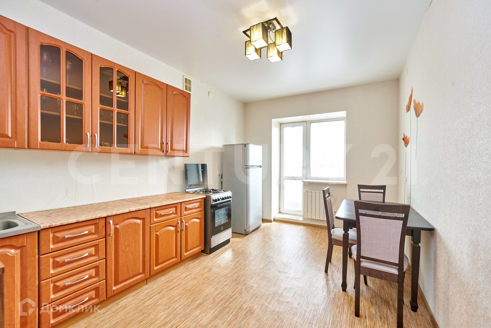 После продажи в квартире остается кухонный гарнитур и мебель.