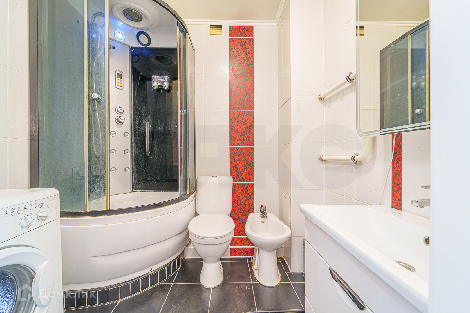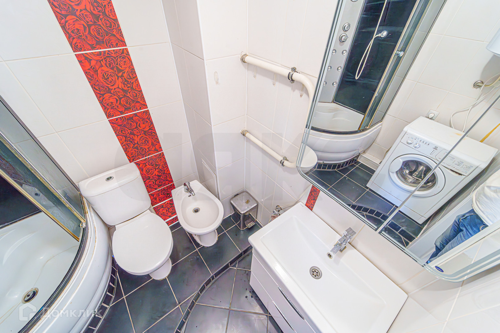В сан/узле кафель и сантехника так же от качественных производителей! Удобно сохранять и поддерживать чистоту в мокрых точках.
