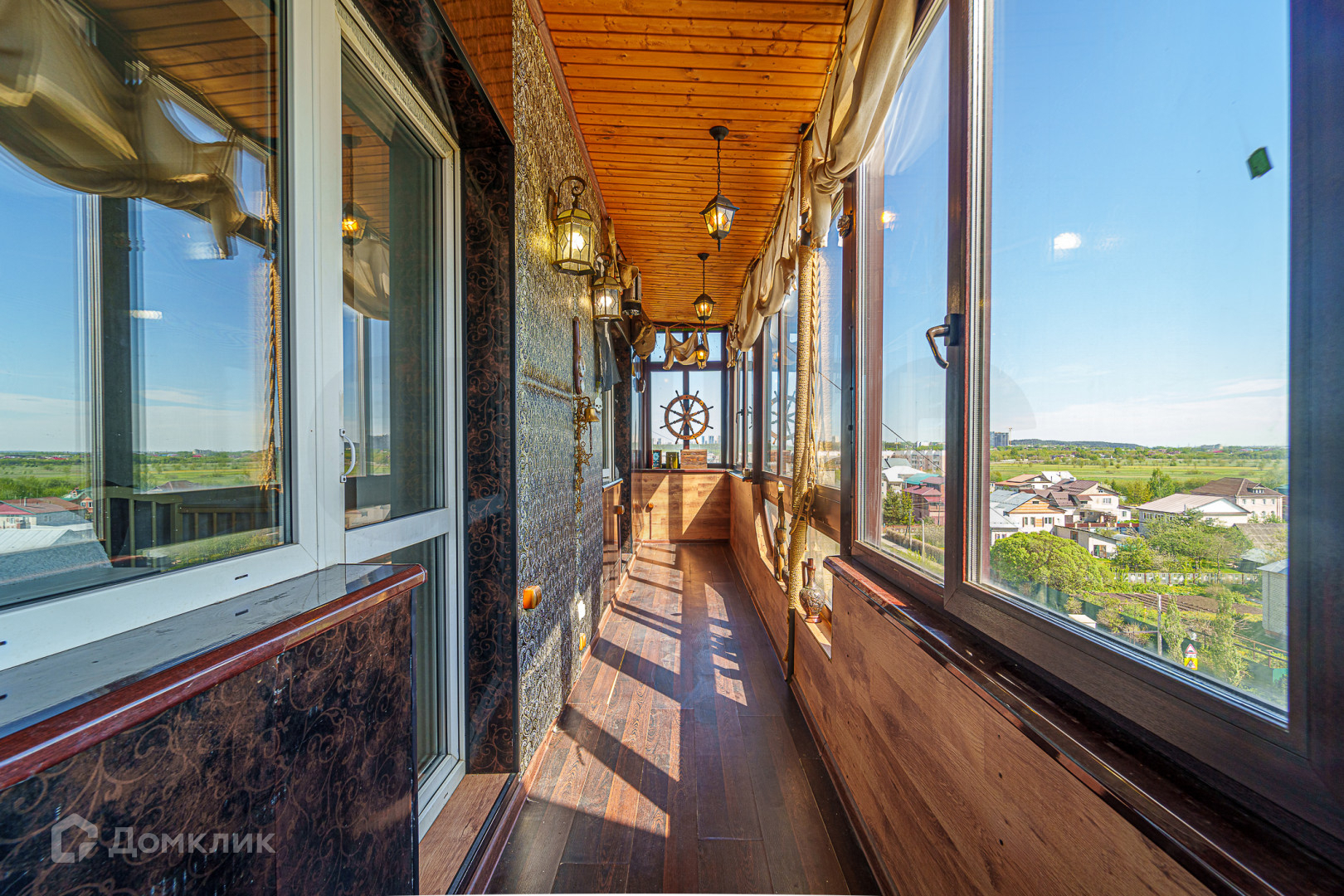 Лоджия исполнена в морском стиле в виде фрегата - раздолье для игр Ваших детей. Да и для взрослых прекрасное место встречать рассветы и провожать закаты - РОМАНТИКА!