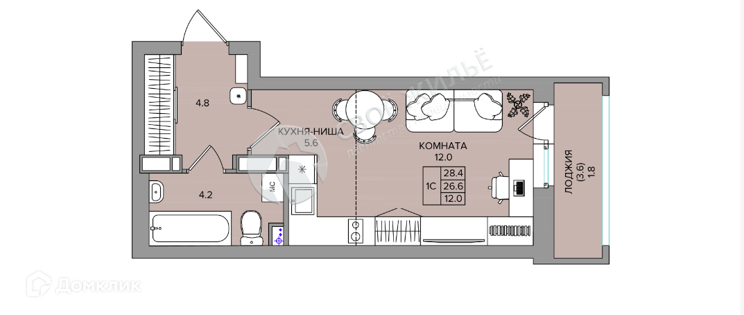 Общая площадь 28.4 м2
