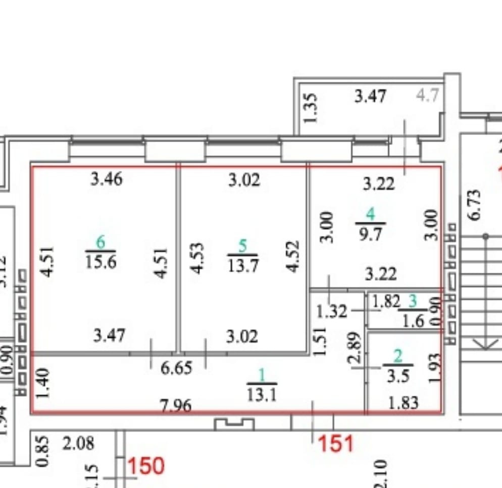 Общая площадь 57.2 м2