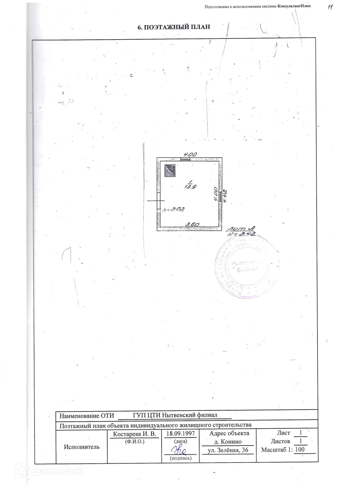 Общая площадь 13.9 м2
