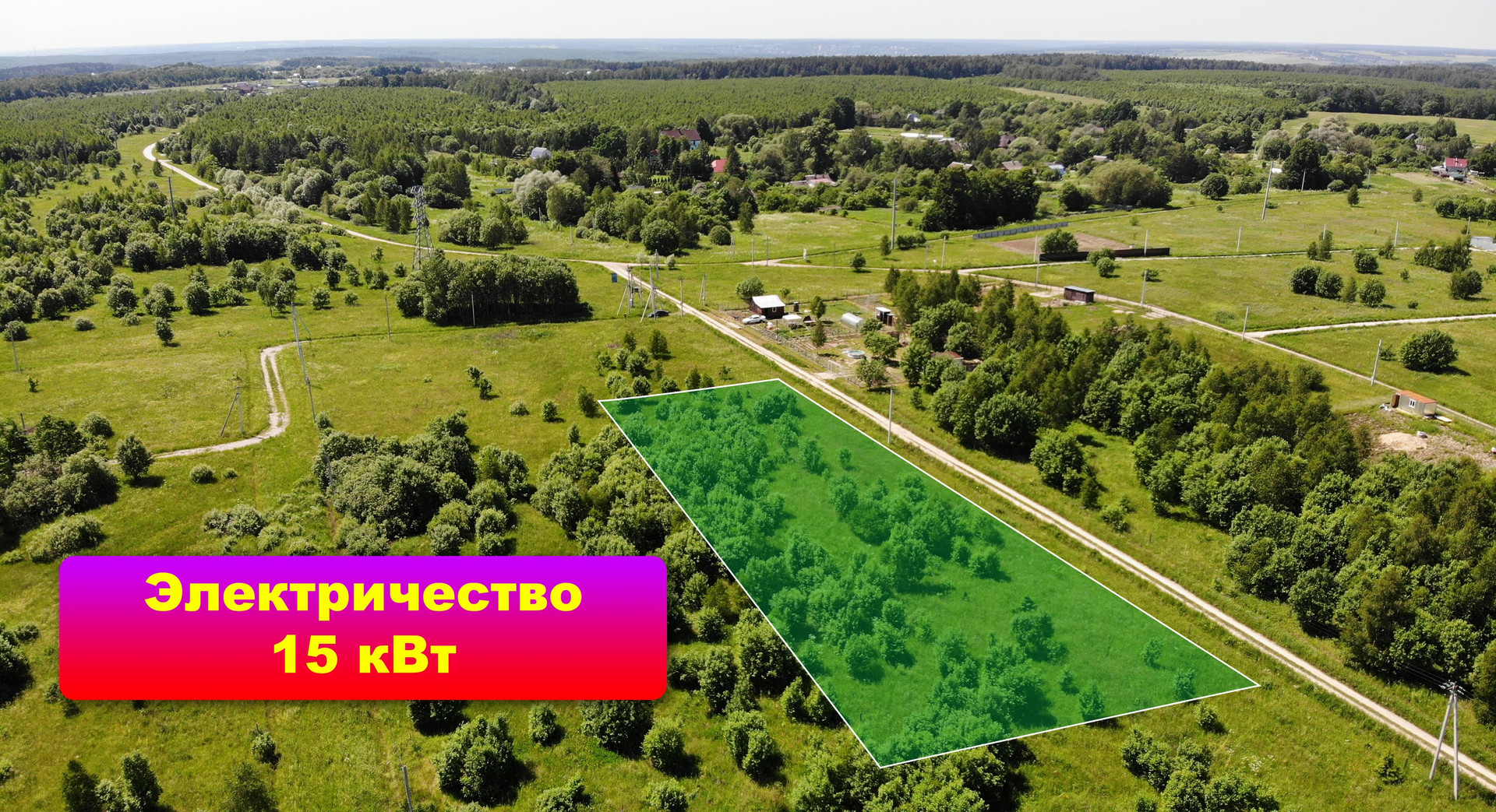 Участок от собственника с подведенными коммуникациями - электричество 15 кВт на 3 фазы, хорошая щебневая дорога. Деревня понемногу обустраивается и принимает новых жителей!