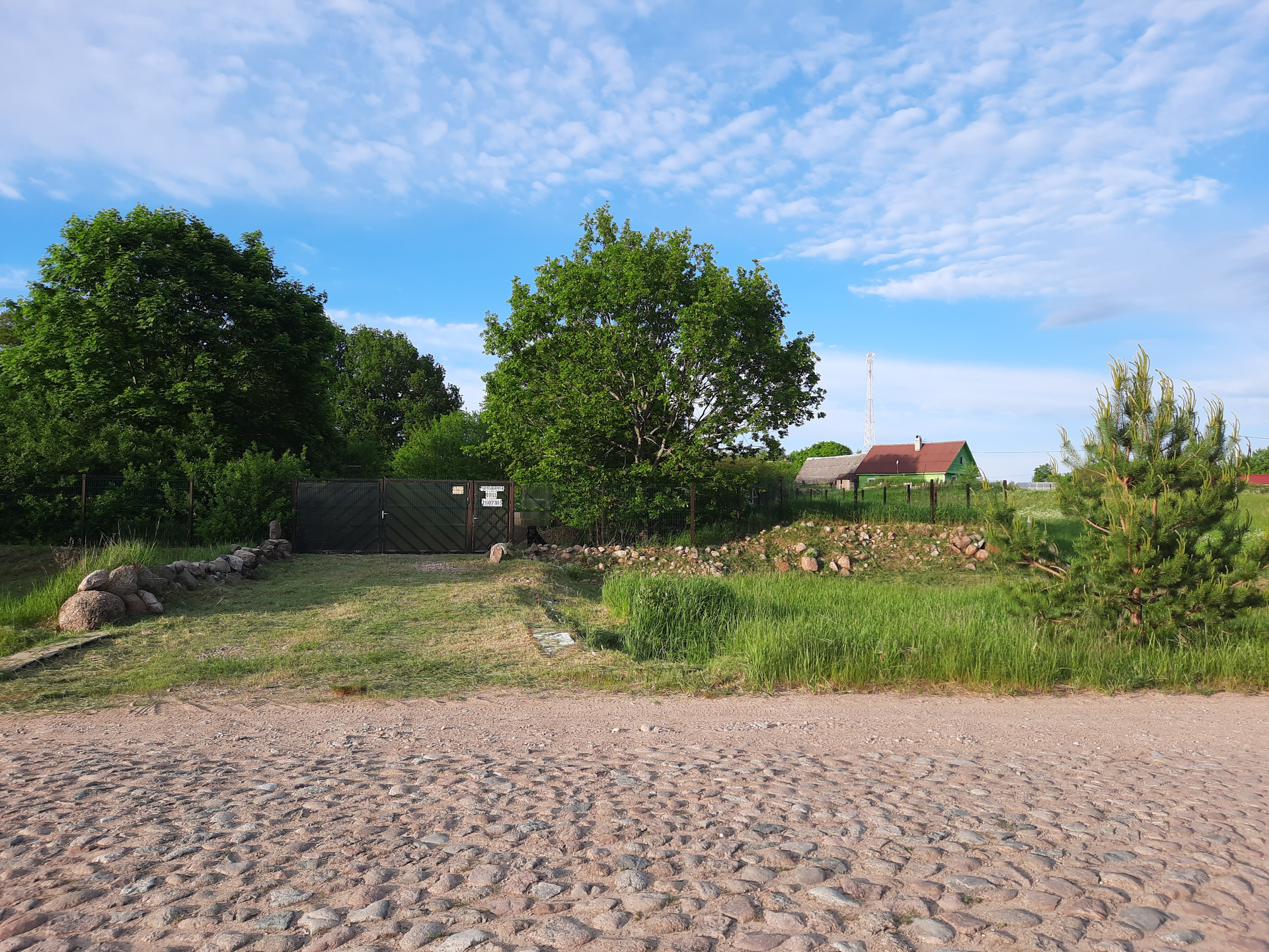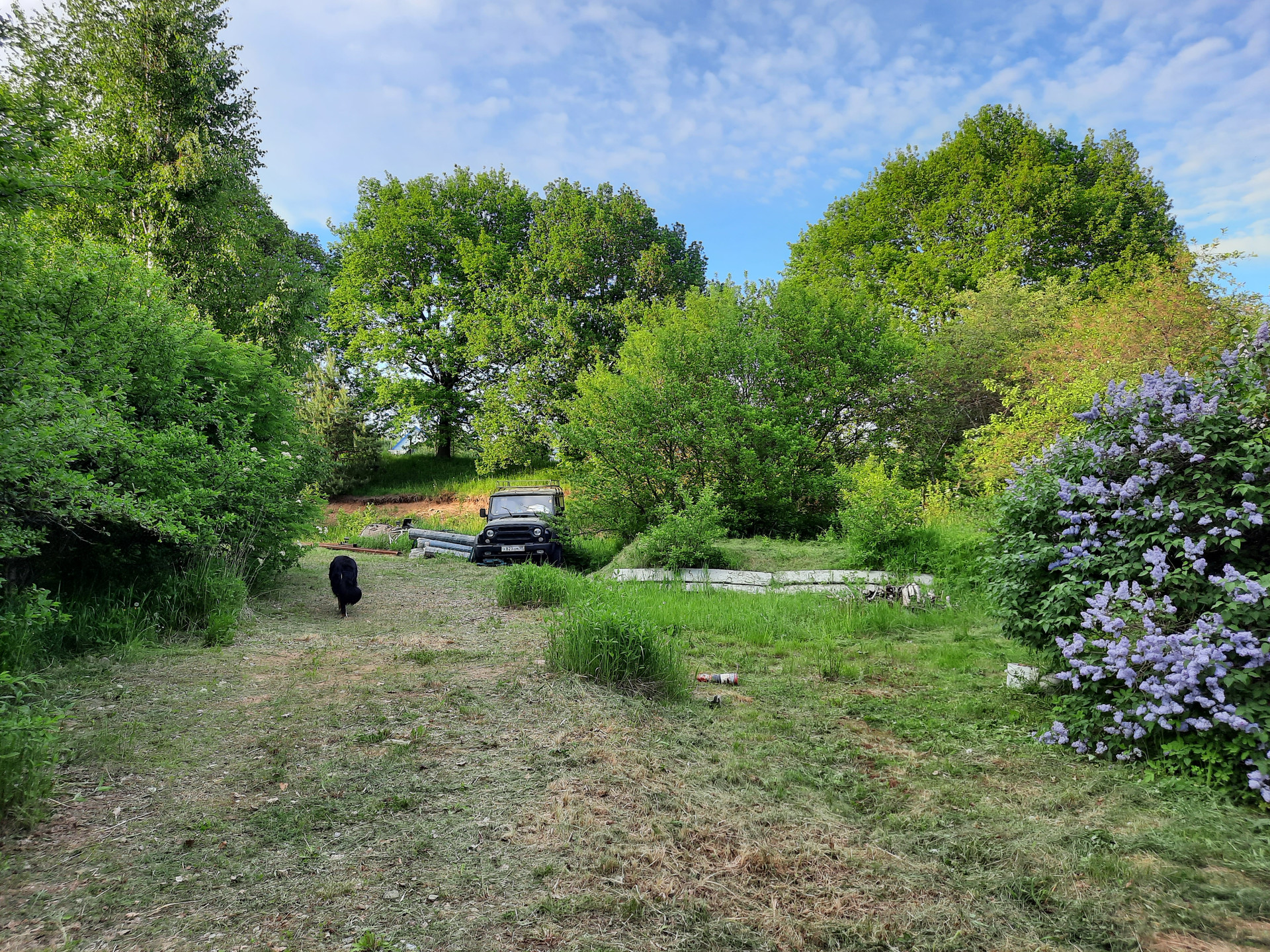 По периметру участок окружают с одной стороны аллея дубов, со стороны дороги сливово-яблоневый сад, с третьей сирень, вишня. Только с одной стороны есть общая граница с соседним участком – соседи приличная семья, с мая по октябрь проживают постоянно.