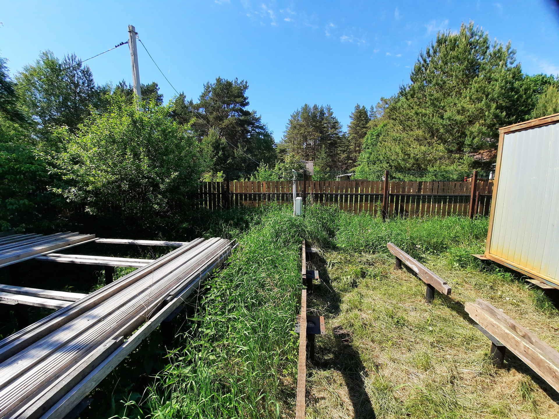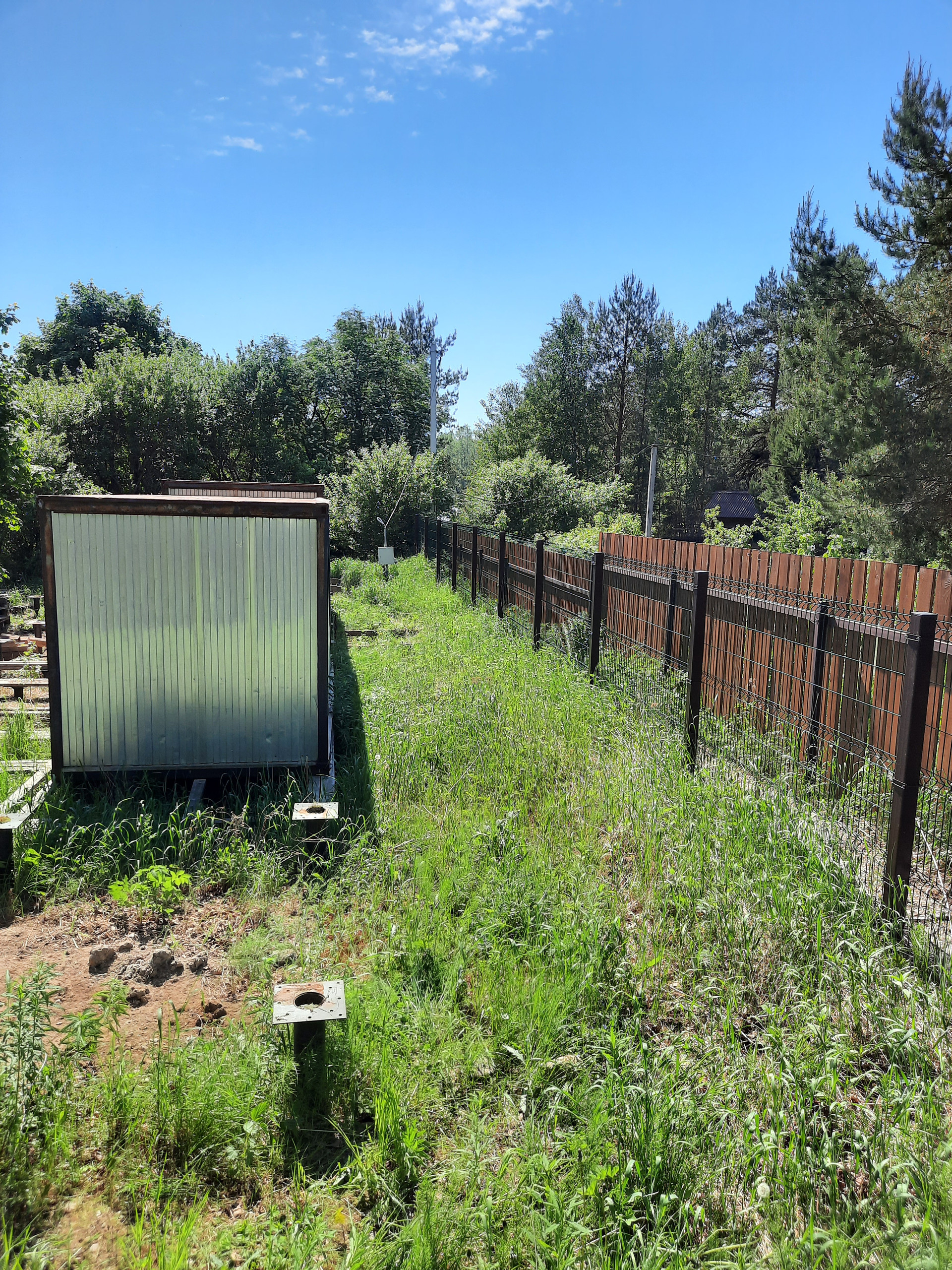 Свайное поле вдоль соседнего участка - 30*8 м винтовые сваи D108 с оголовками (длина свай 3,5 – 5,0 м) – 106 свай с шагом 2 метра (можно использовать для установки бани, хозблока, гаража или др) – 650 000 р.