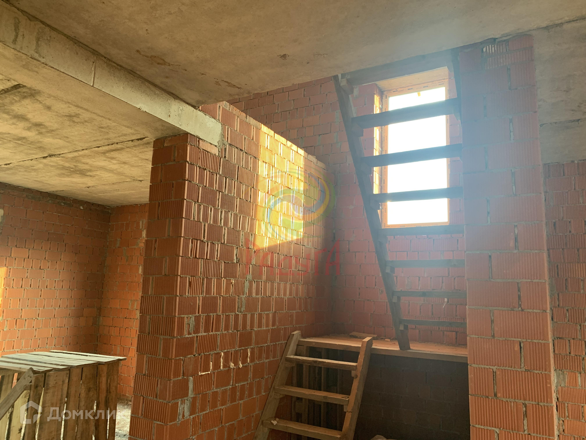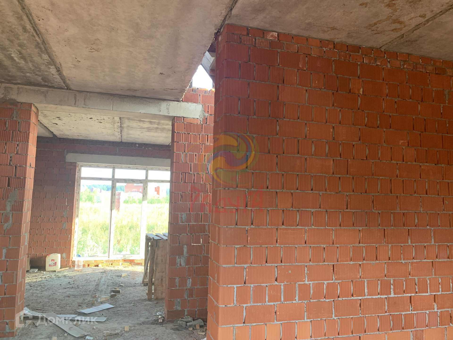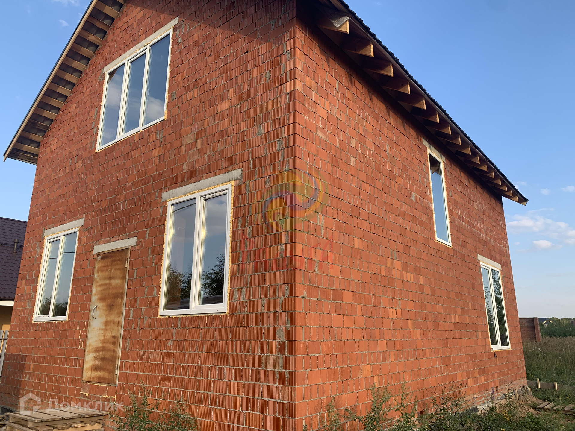 Построен из керамического кирпича, толщина стены 38 см.