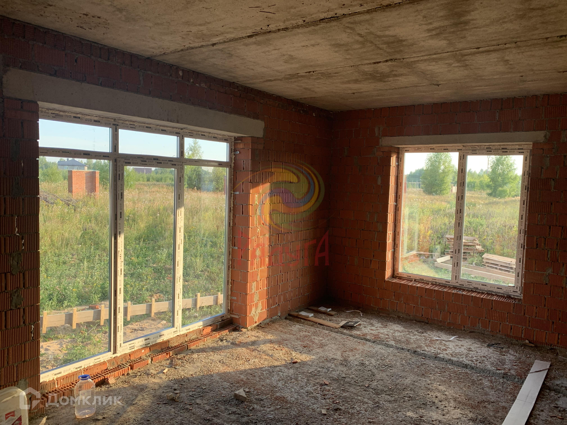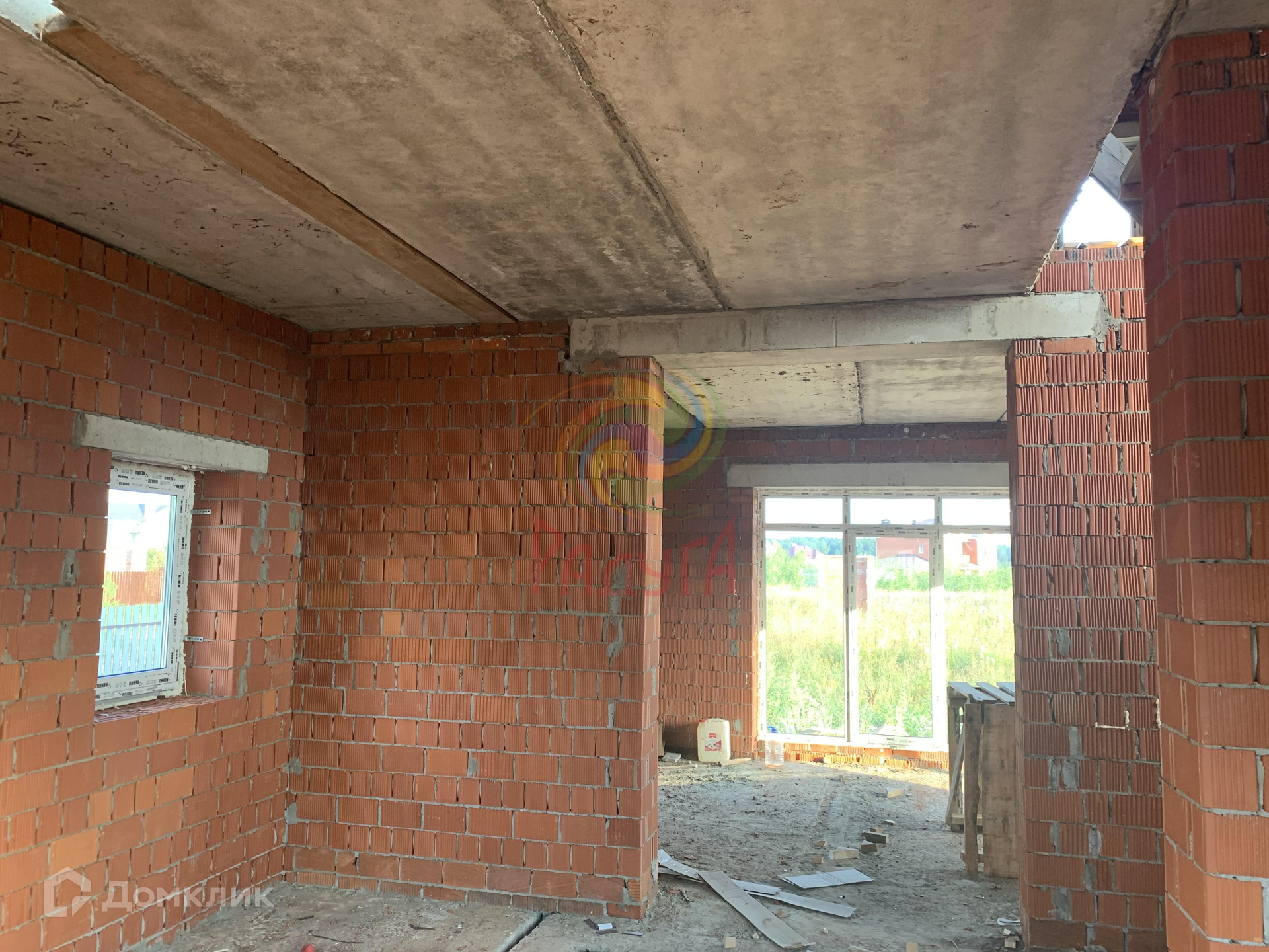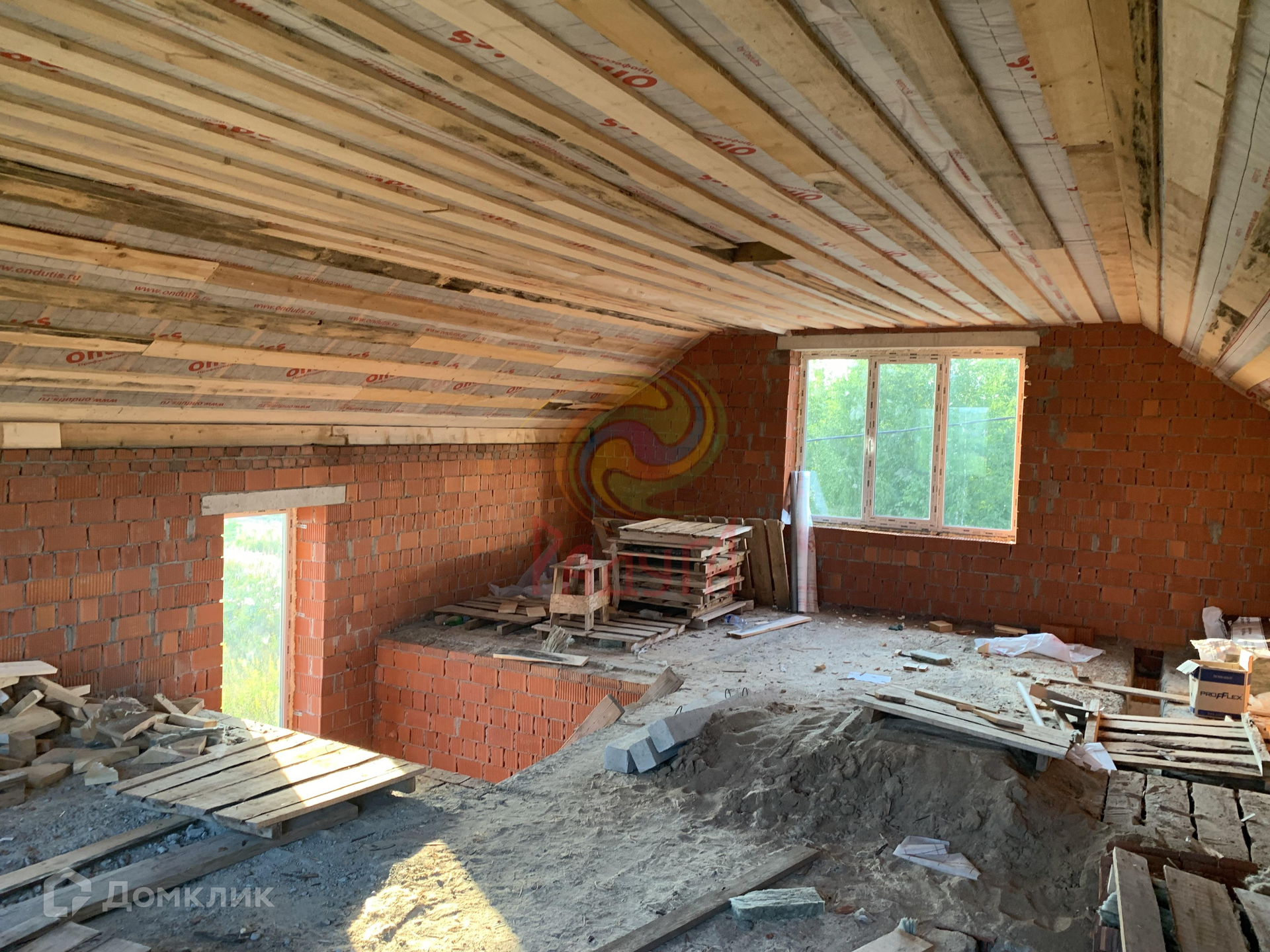 Построен из керамического кирпича, толщина стены 38 см.