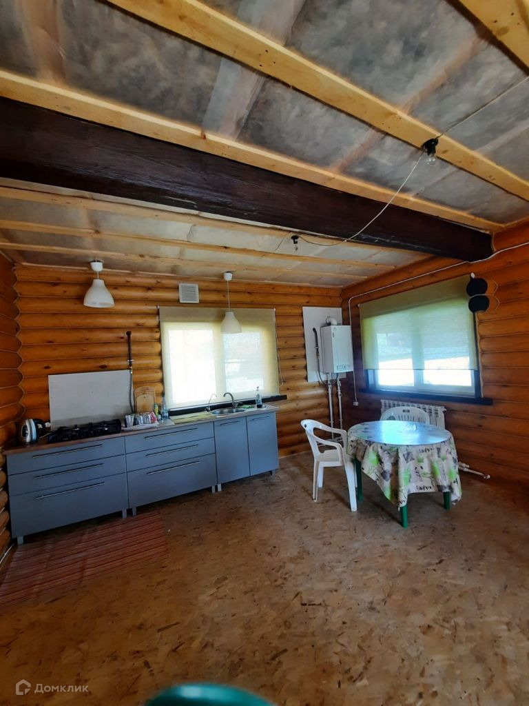Дом построен из оцилиндрованного бревна, диаметром 200 мм, обработанного скандинавской пропиткой FLUGGER, межбревенчатые швы утеплены специальным герметиком. Окна пластиковые, крыша-металлочерепица.