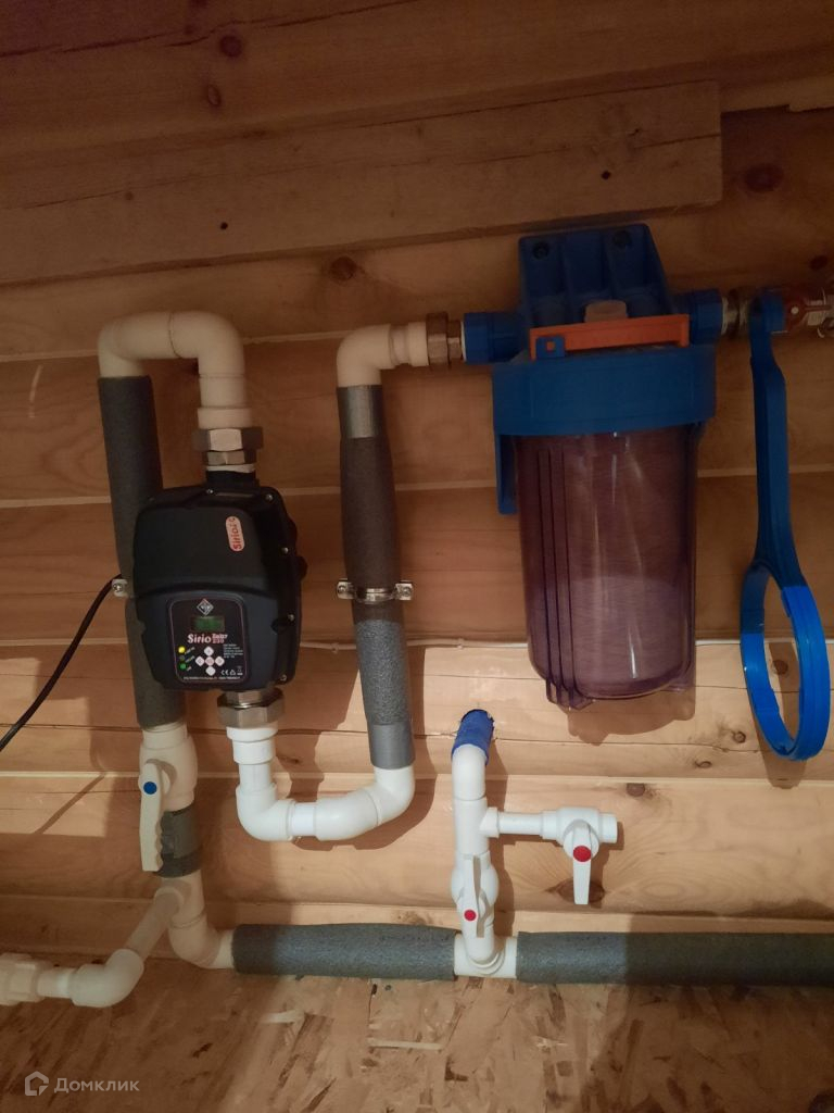 Канализация-септик из двух ям с ьетонными кольцами диаметром 1,5м, скважина 13м, погружной насос с высокочастотным преобразователем марки SIRIO.
