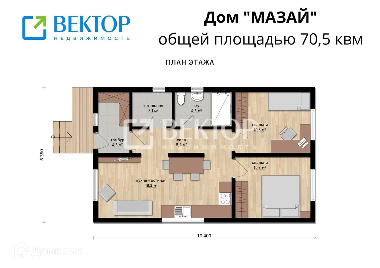 Общая площадь 70.5 м2