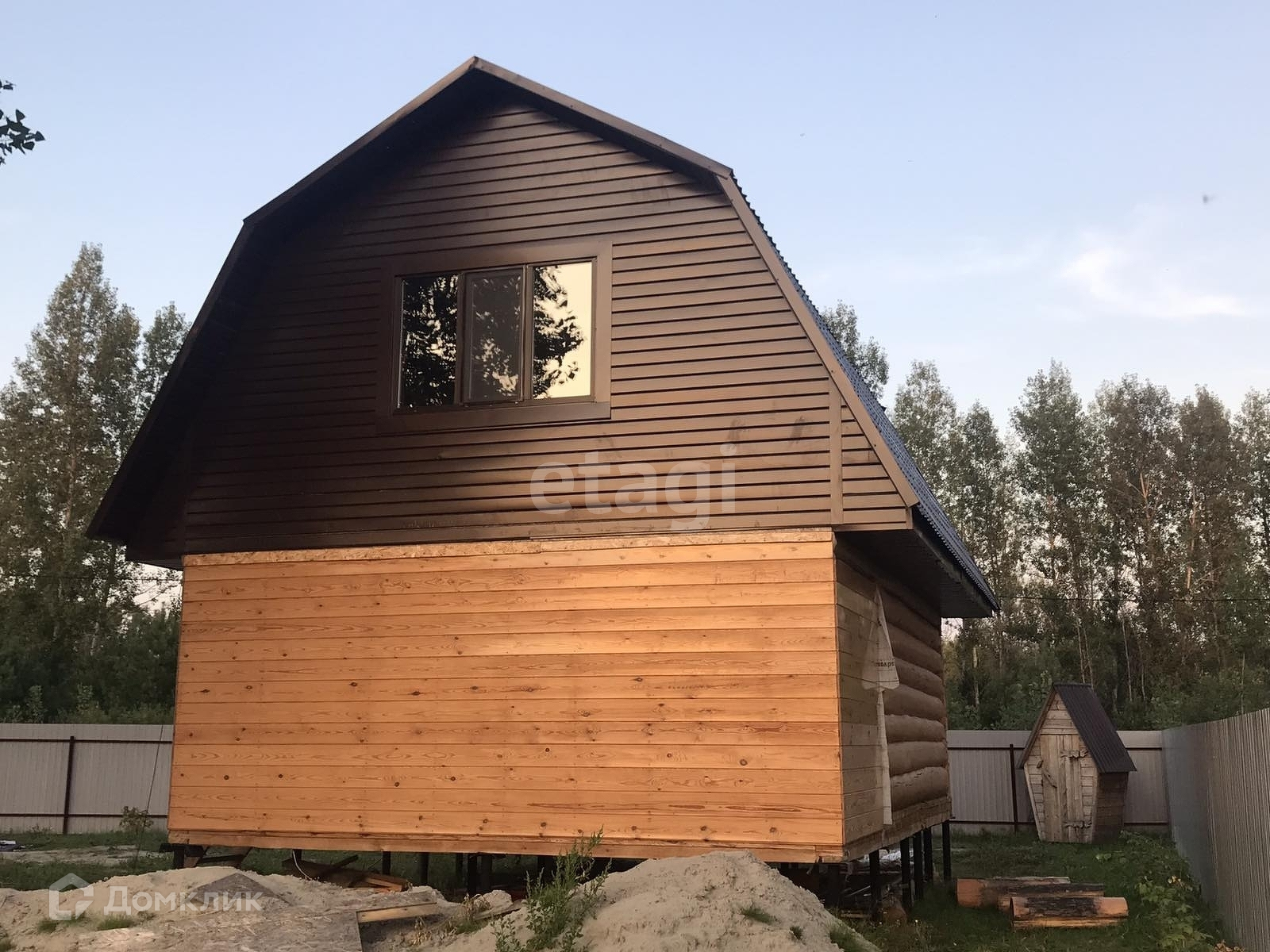 Строился дом для себя. Дом 6х8: сруб-пятистенок 6х6 плюс пристрой, второй этаж 4х8. Поставлена перегородка для санузла. Электричество разведено по дому. Канализация - септик, заведена в дом. Вода на участке - скважина и колодец. Фундамент - буронабивные сваи. Утепление 20 см пол, межэтажные, потолок. Стены обработаны лаком снаружи и краской изнутри (производство Германия). Окна и входная дверь - стеклопакет, рамы коричневого цвета. Газ - через дорогу.
