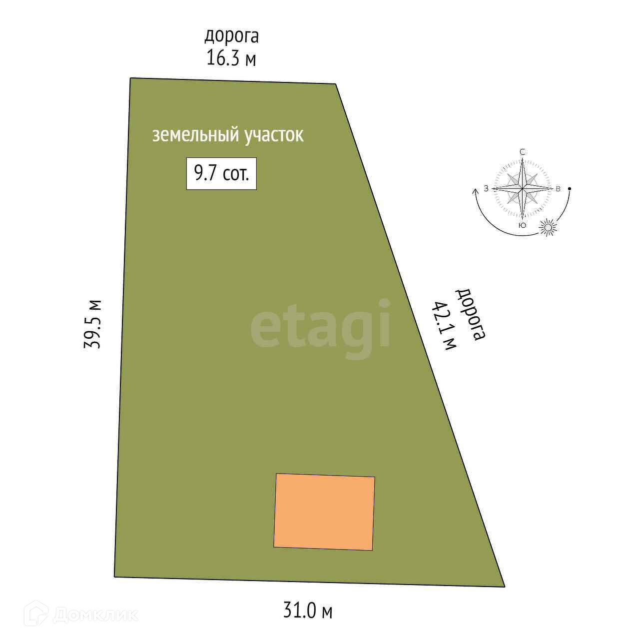 Площадь участка 9.7 сот.