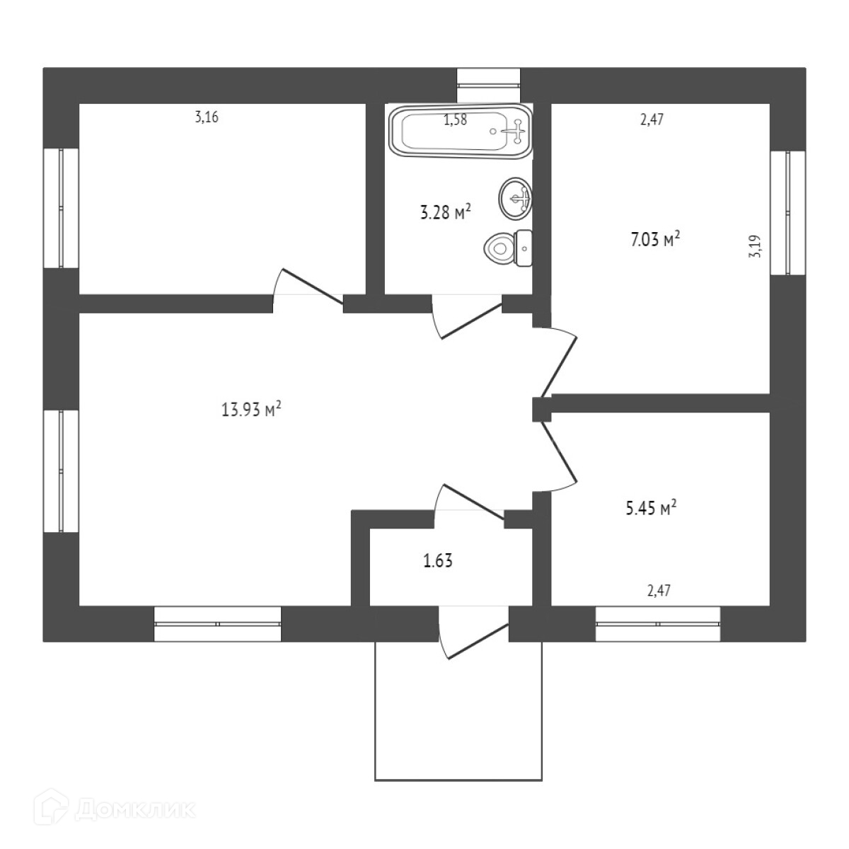 Общая площадь 44 м2