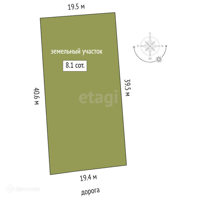 Площадь участка 8.1 сот.